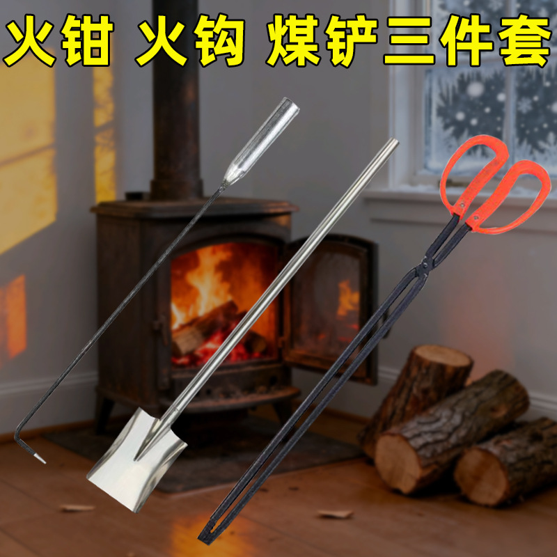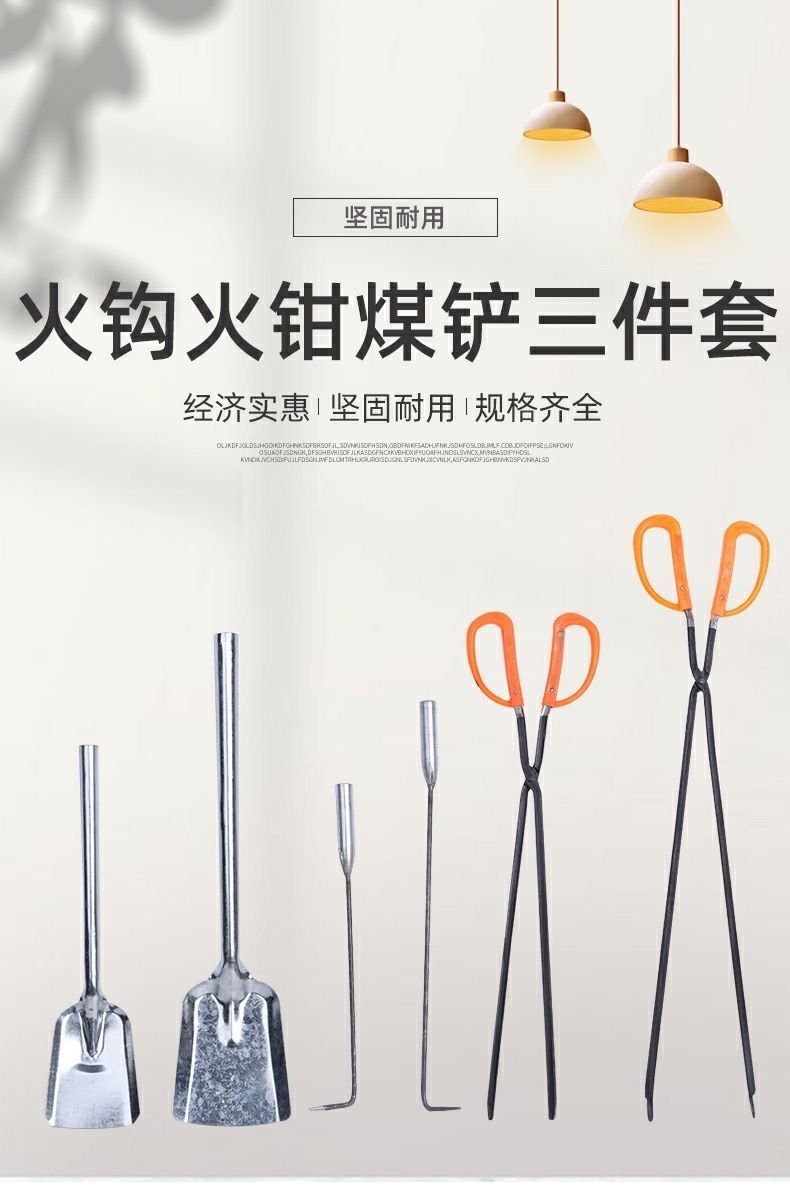 烧火工具三件套火钩子煤铲火钳铲家用耐高温煤炭火炉子配件大全