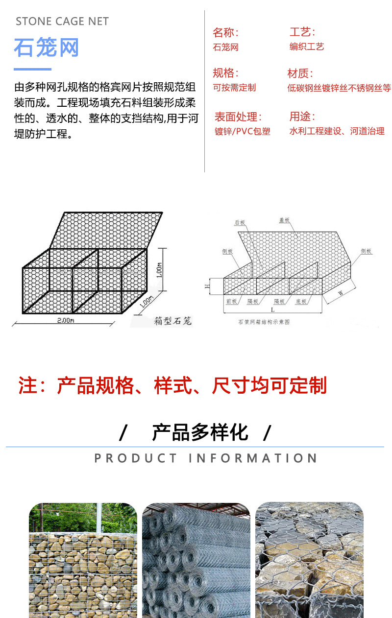 景勝地動物園中庭石籠ネット鉛線河川補強護岸防洪籠ネットバッグプラスチック鉄線