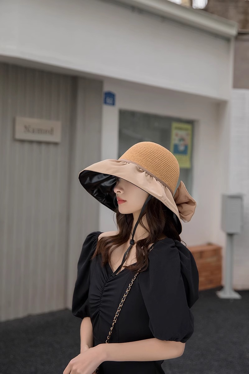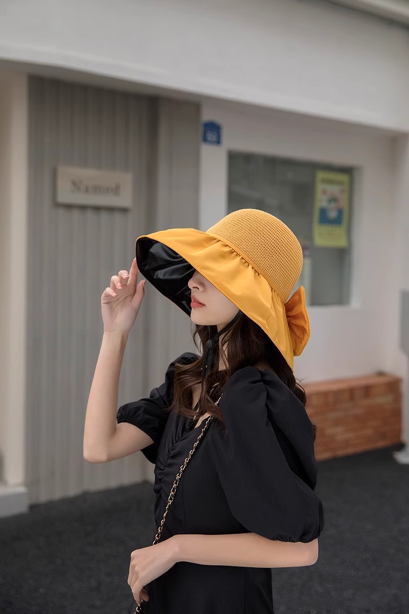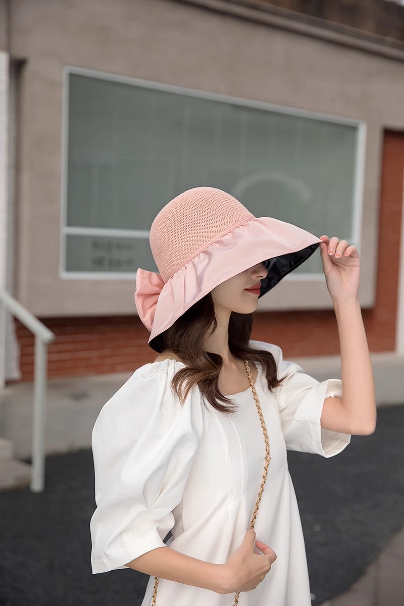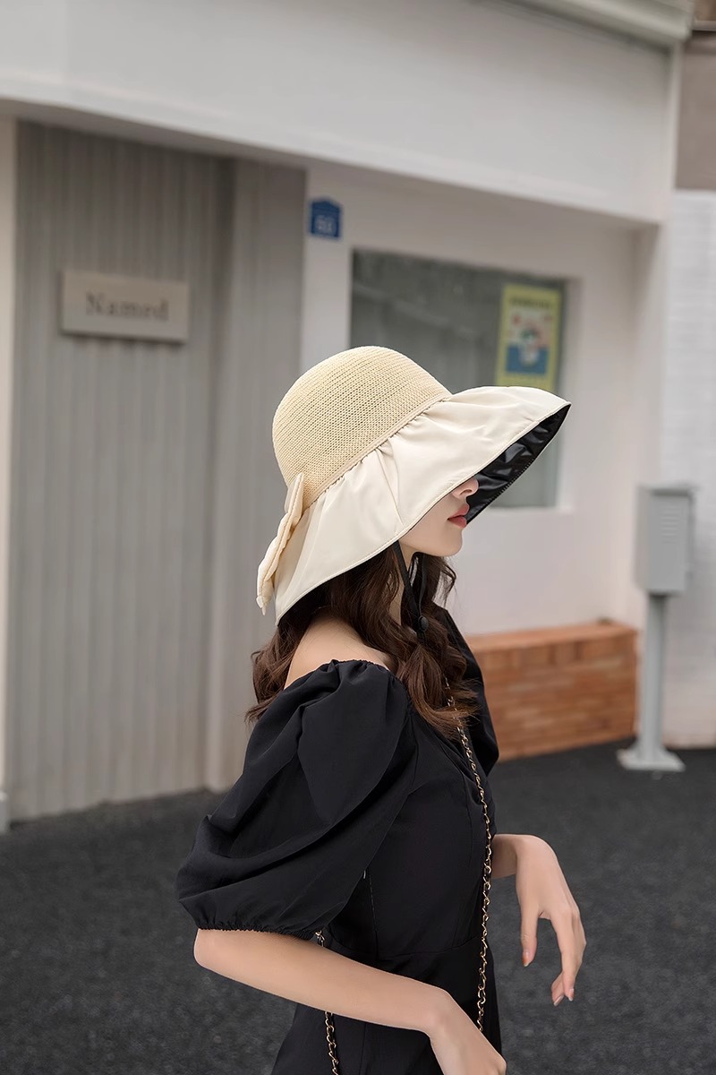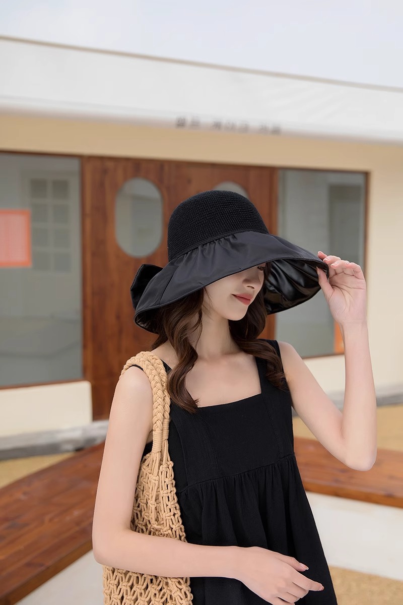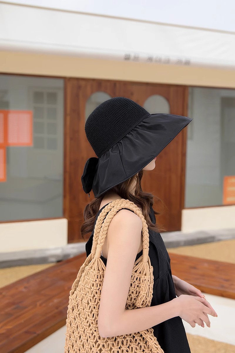 女性用帽子、夏用大きなつばのビニール漁師の帽子、蝶結びの日よけ帽子、顔を覆う収納袋、日焼け止め帽子、日よけ帽子
