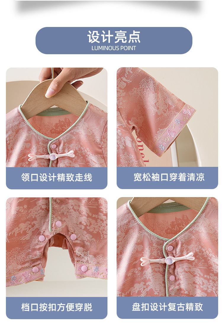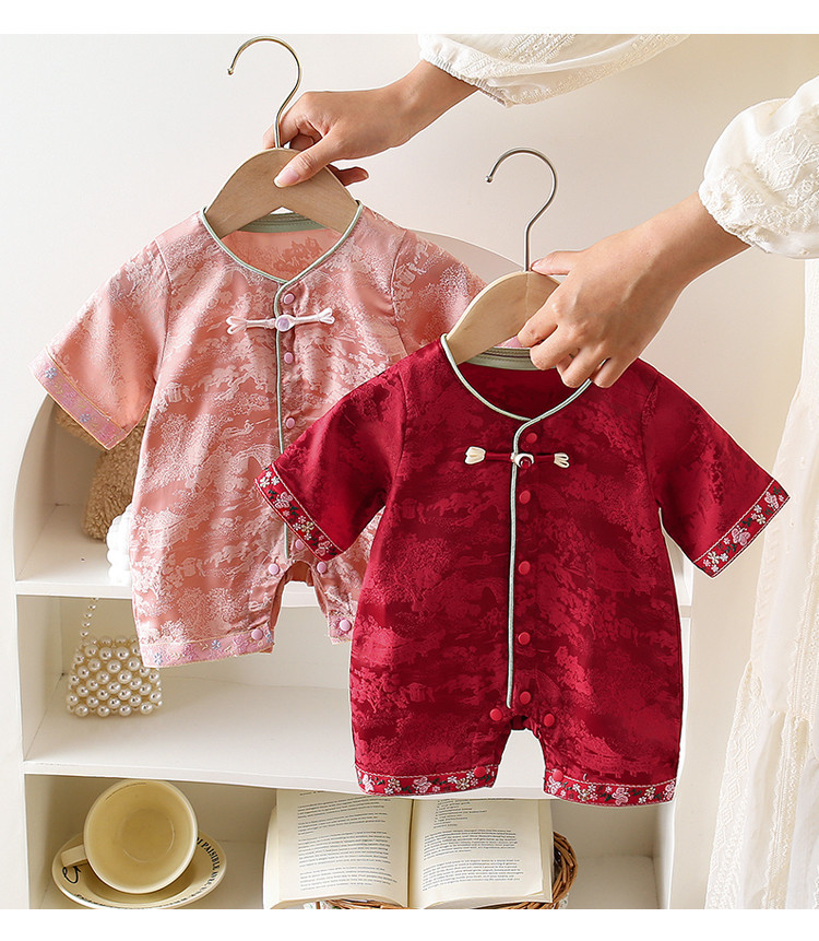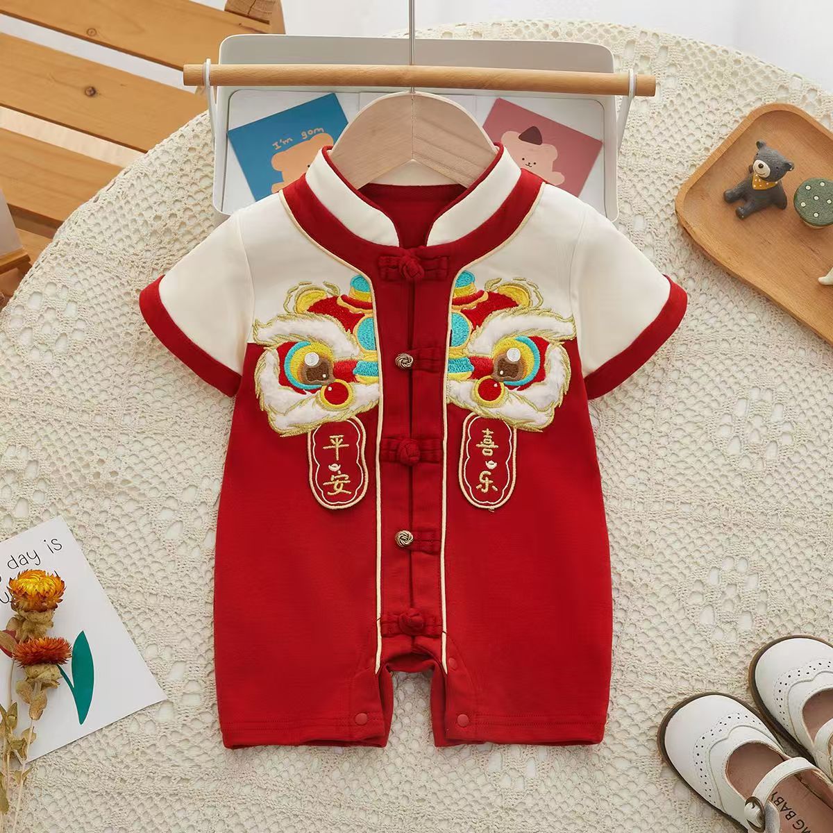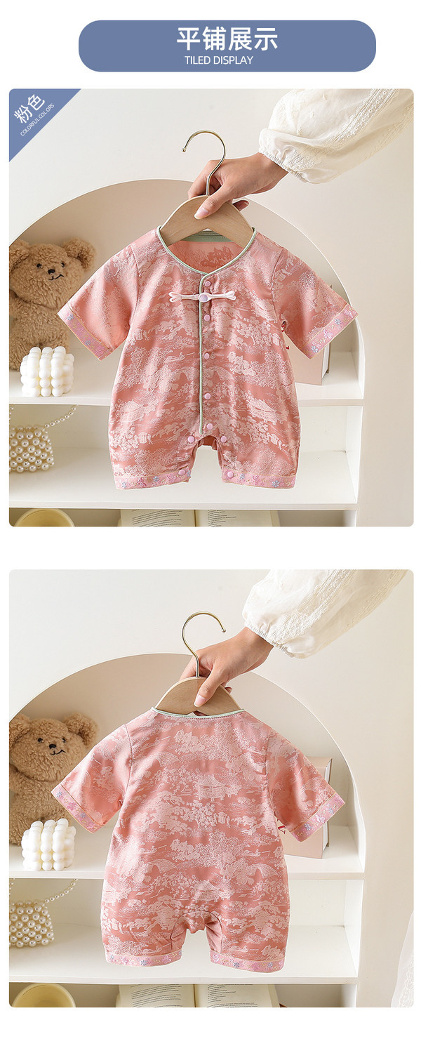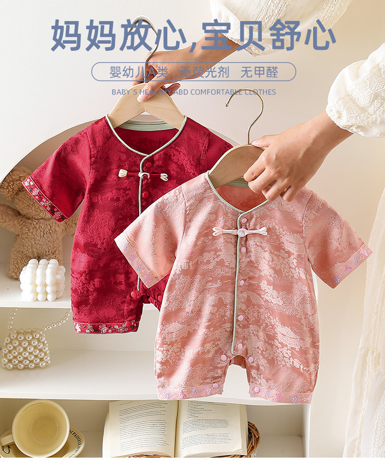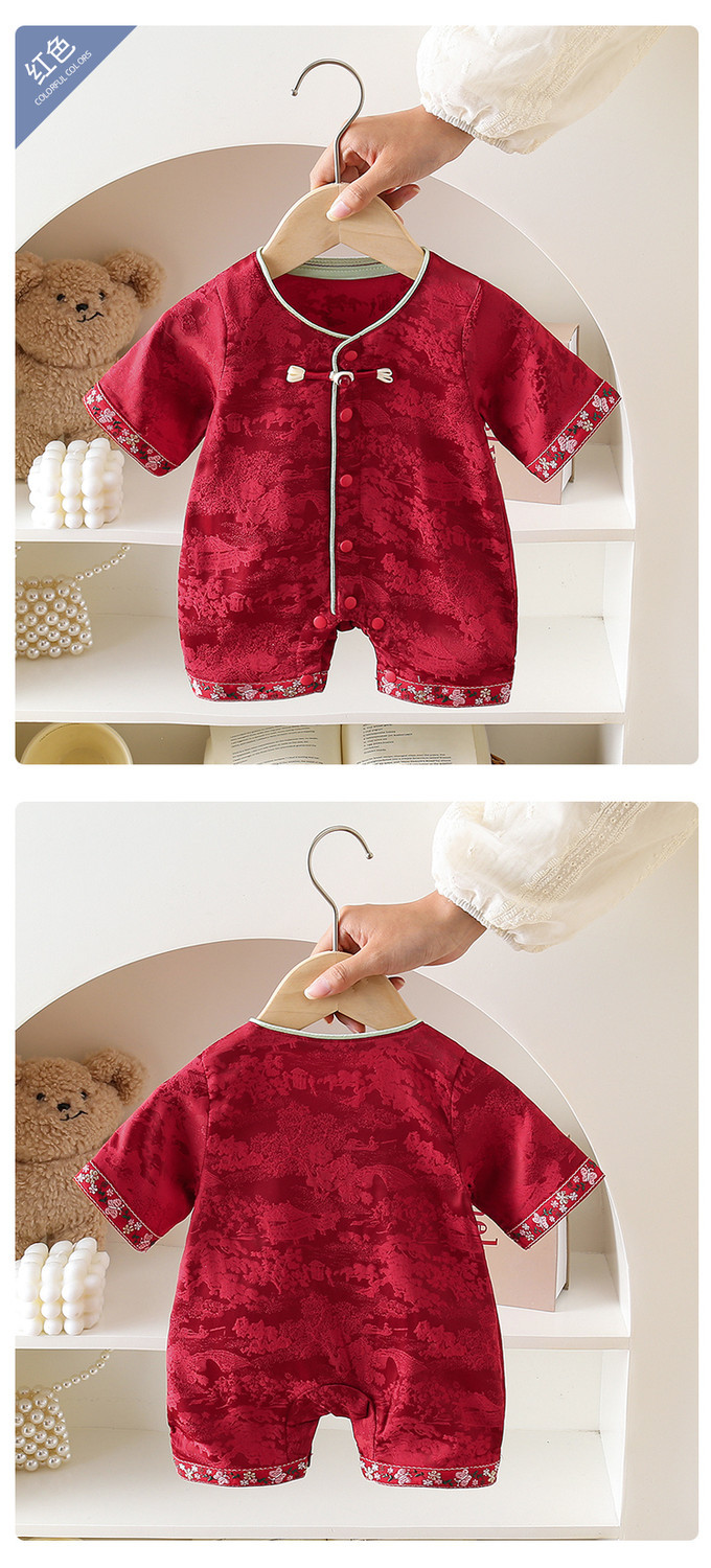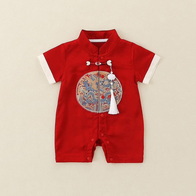 ベビー夏服、男の子ベビー中国風新中国風ジャンプスーツ、満月、100日、夏のハイハイ服