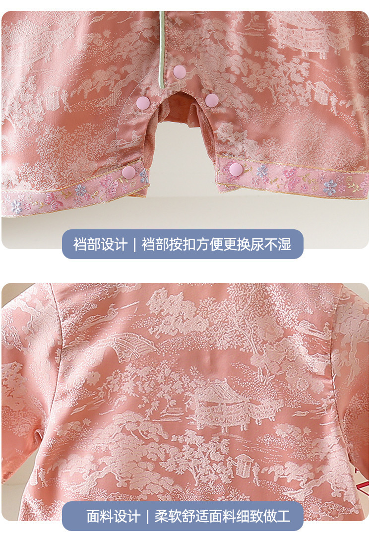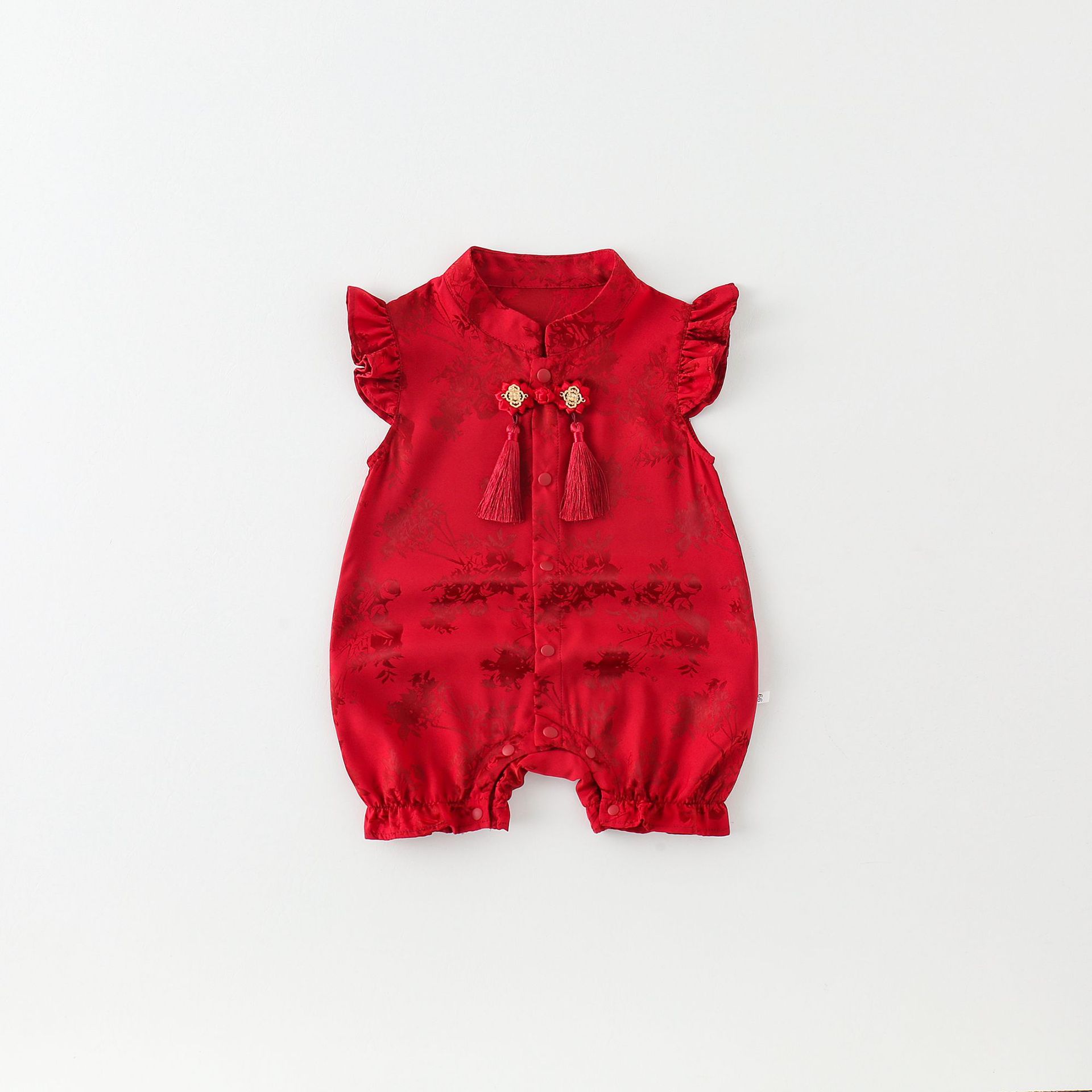中国風のベビー服、夏のジャンプスーツ、女の赤ちゃんの中国風の漢服、新生児の100日間のロンパース
