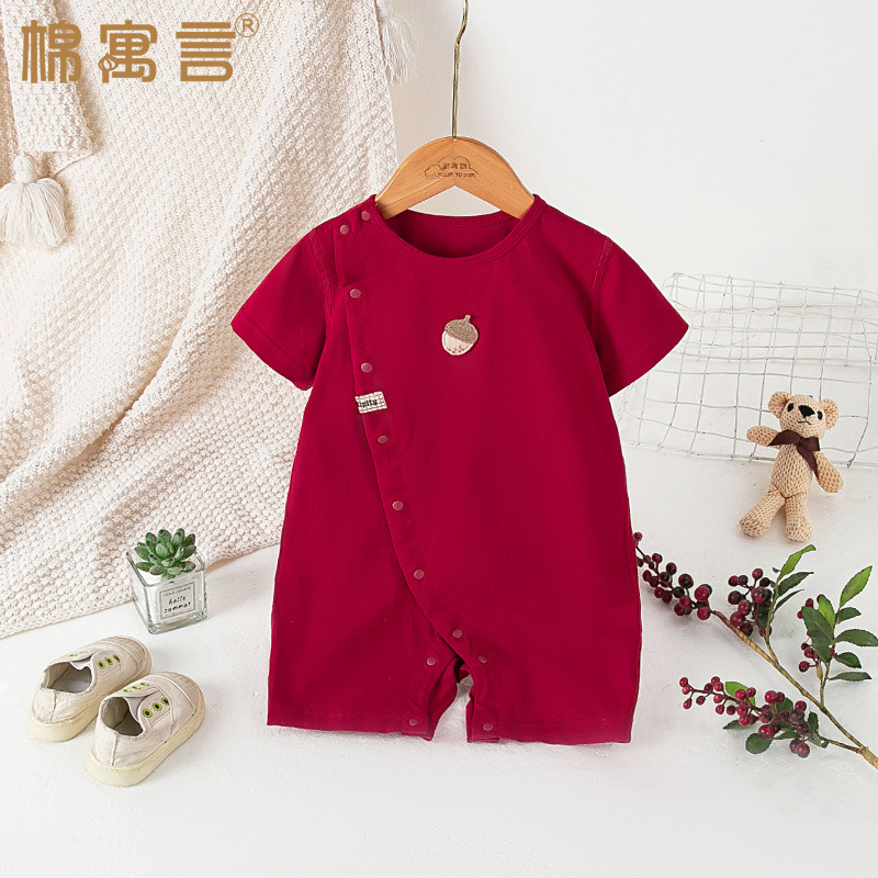 新生婴儿衣服夏季宝宝短袖连体衣百天抓周红色满月服薄款哈衣外出