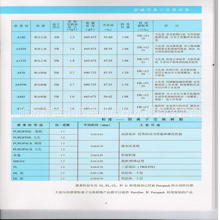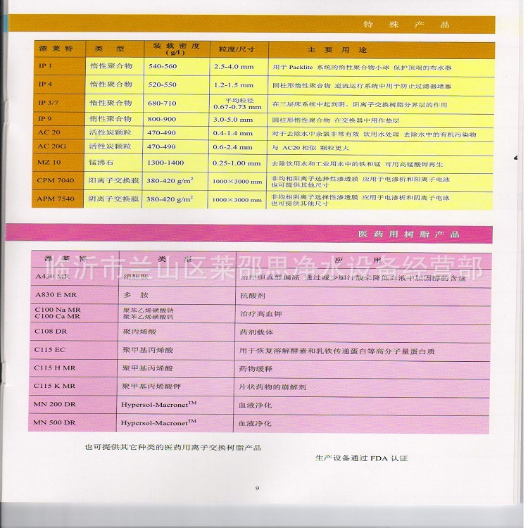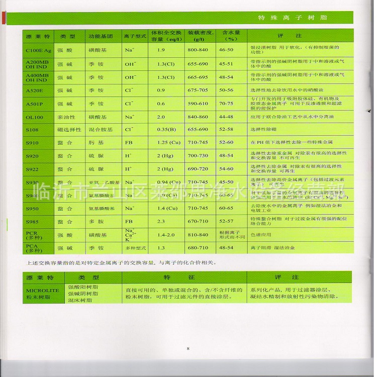 全交(钠型)-----------------------------------------------≥1.9eq/L湿树脂