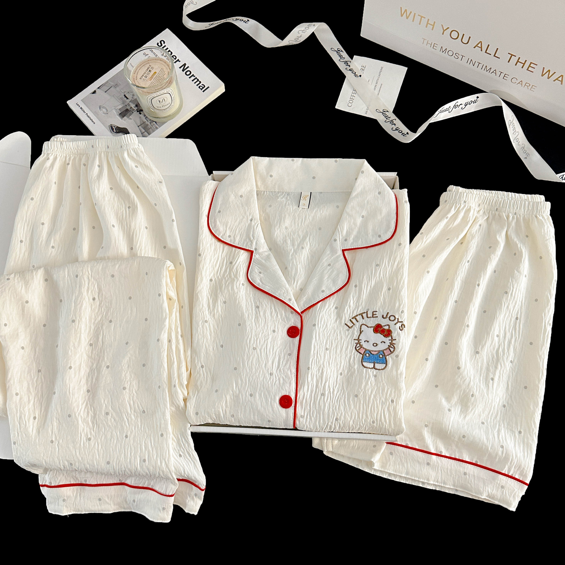 クラウドコットンかわいい漫画 KT 猫パジャマ女性のための夏 2025 新しい半袖オープンライニング夏のホームウェアセット
