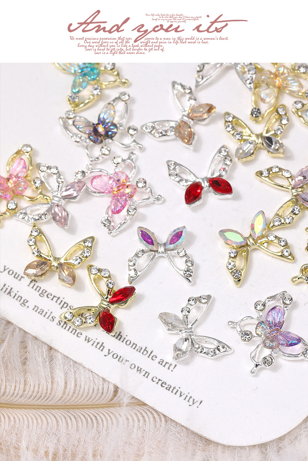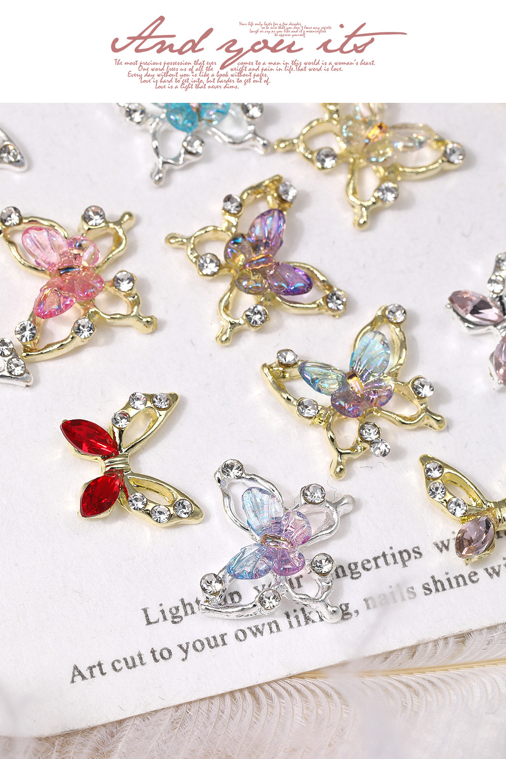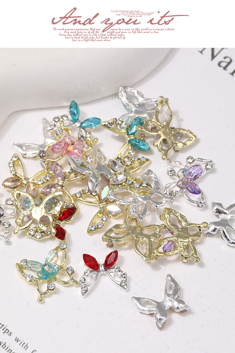 2024クロスボーダー熱売蝶ネイルアクセサリー透かし彫り合金にダイヤモンドの翼を入れる3d立体爪装飾部品