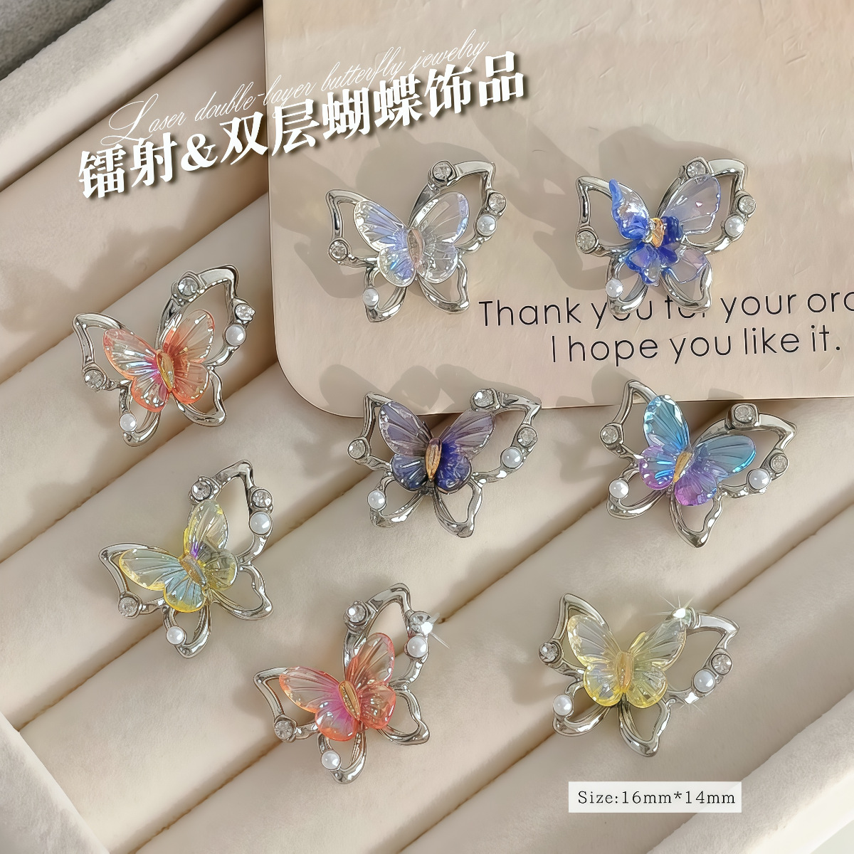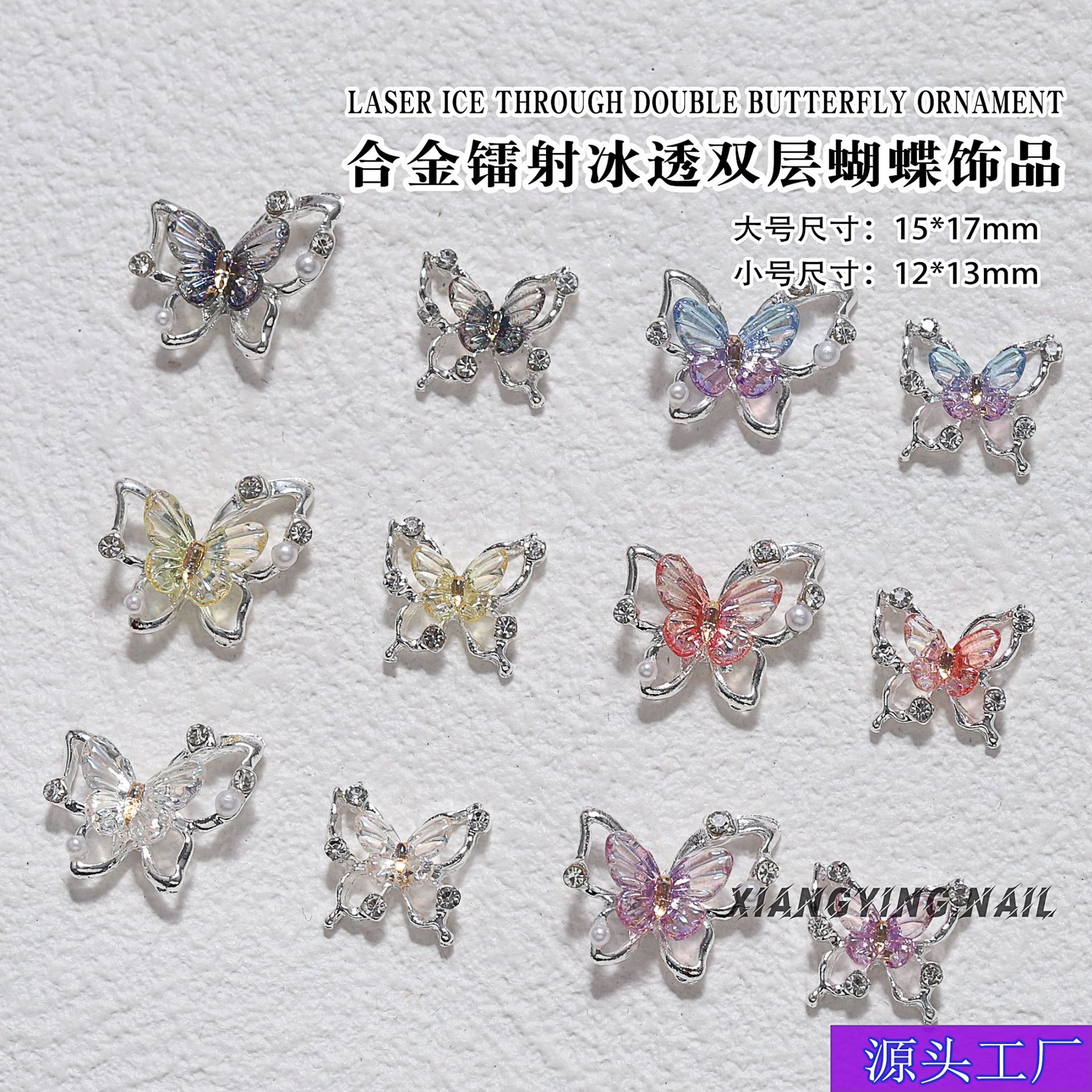 甜美韩系双层极光蝴蝶美甲饰品合金美甲钻diy装饰吊坠材料配件