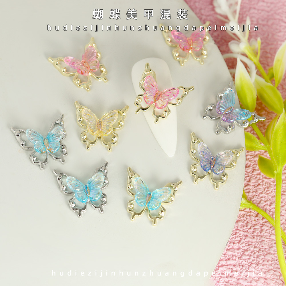 ネット赤二重蝶ネイル霊動レーザー蝶diy立体アクセサリー透かし爪装飾insネイル