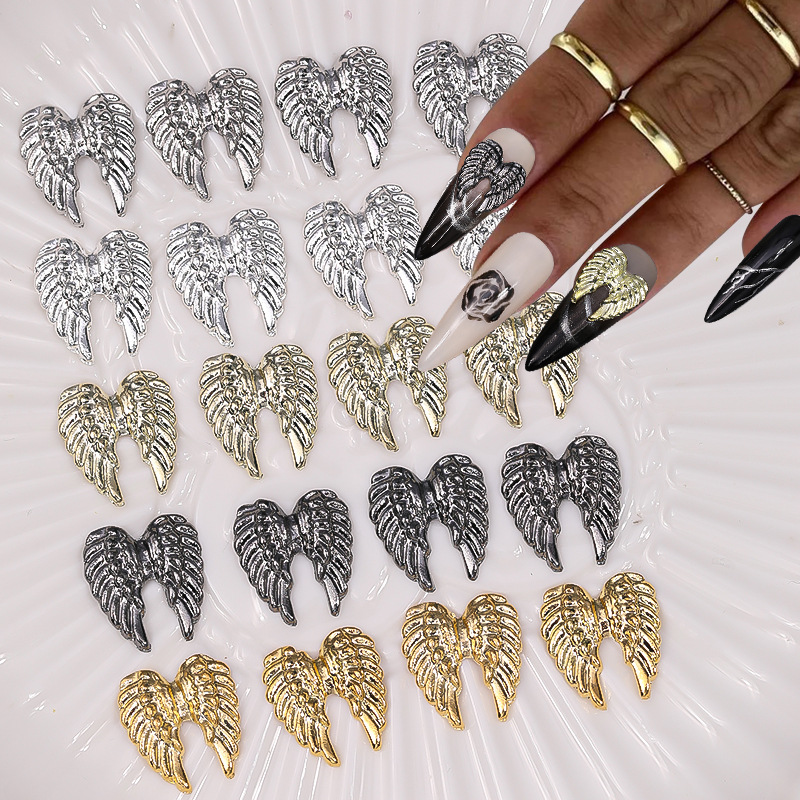 2025 クロスボーダー新ダークエンジェルの羽ネイルアートアクセサリー羽合金 3D ネイルデコレーションアクセサリー
