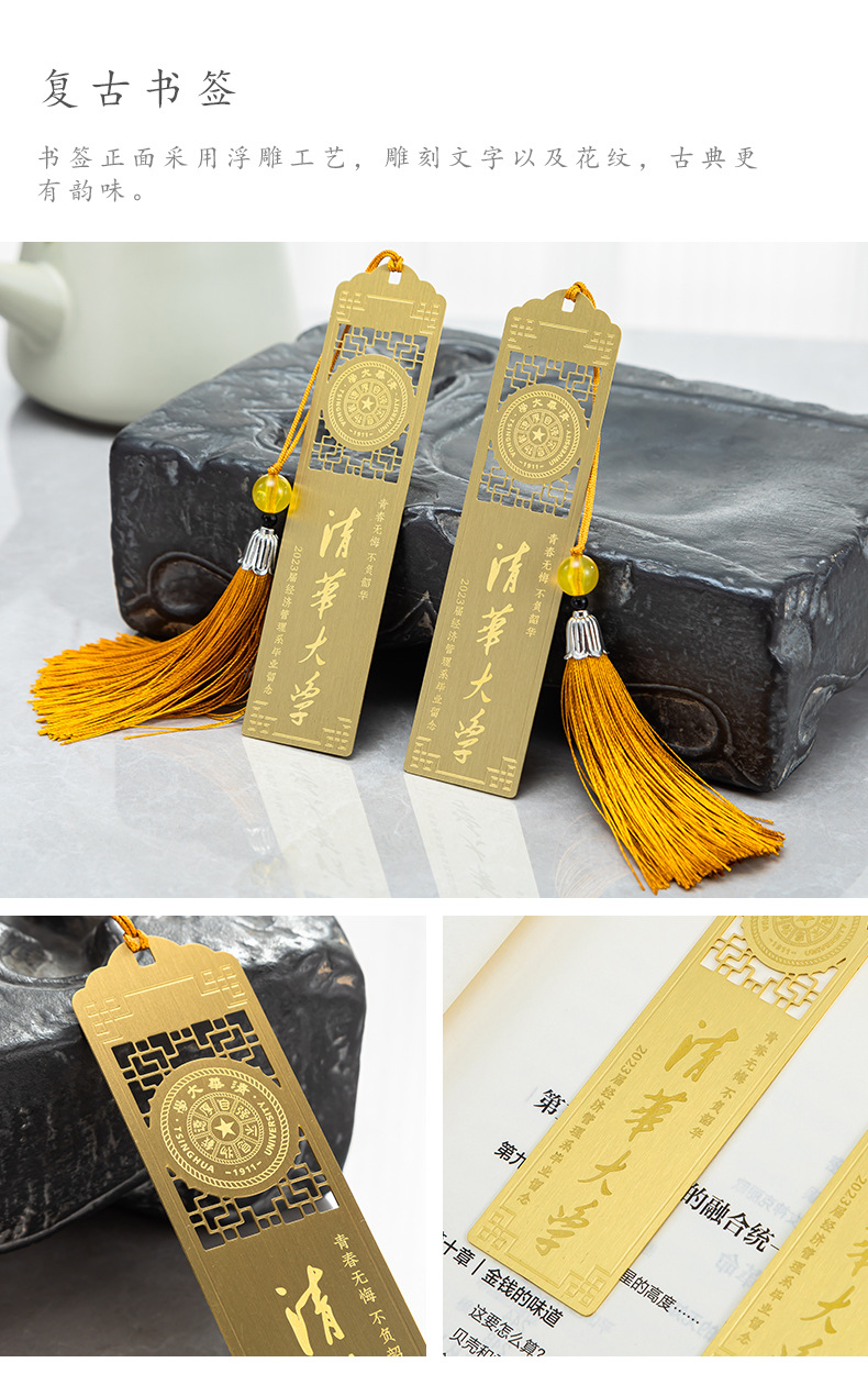 卸売中空中国風クリエイティブメタルブックマーク真鍮ブックマーク卒業記念品ブックマークカスタマイズ