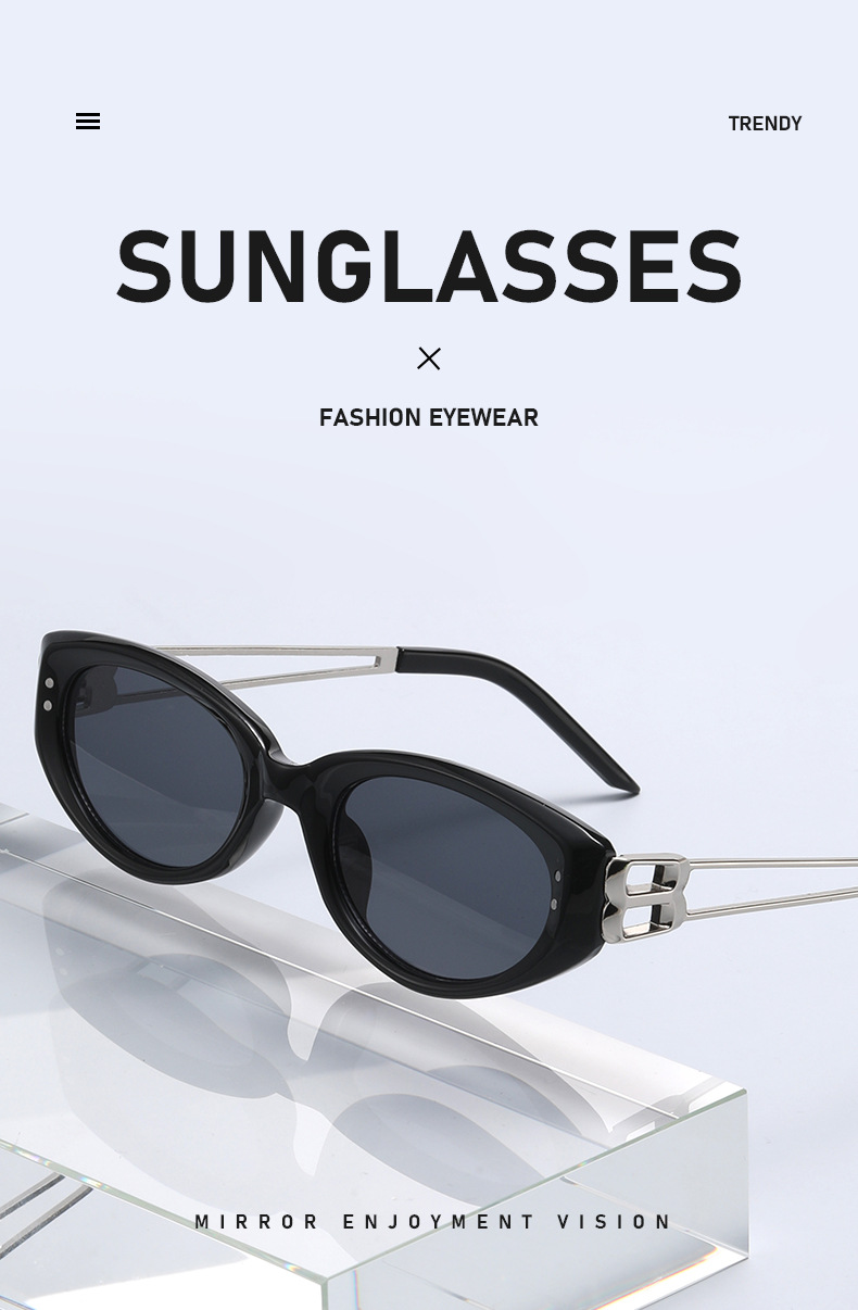 欧美时尚偏光猫眼遮阳太阳镜小红书抖音街拍爆款高级复古个性小框