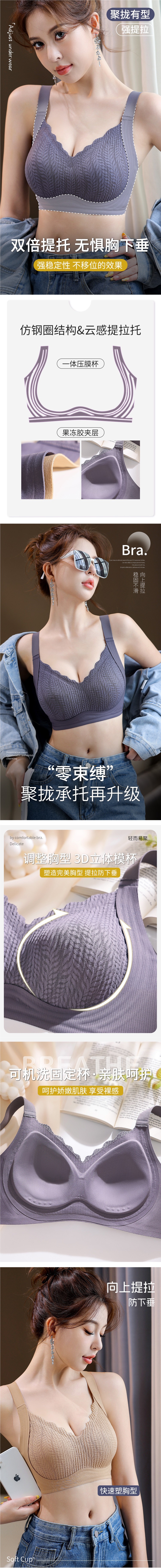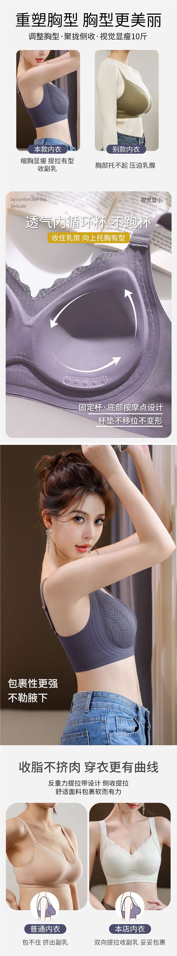 胸が小さい女性向けシームレス下着、プッシュアップサポート、たるみ防止、副乳縮小、レースファンデーション、固定カップ調整ブラ