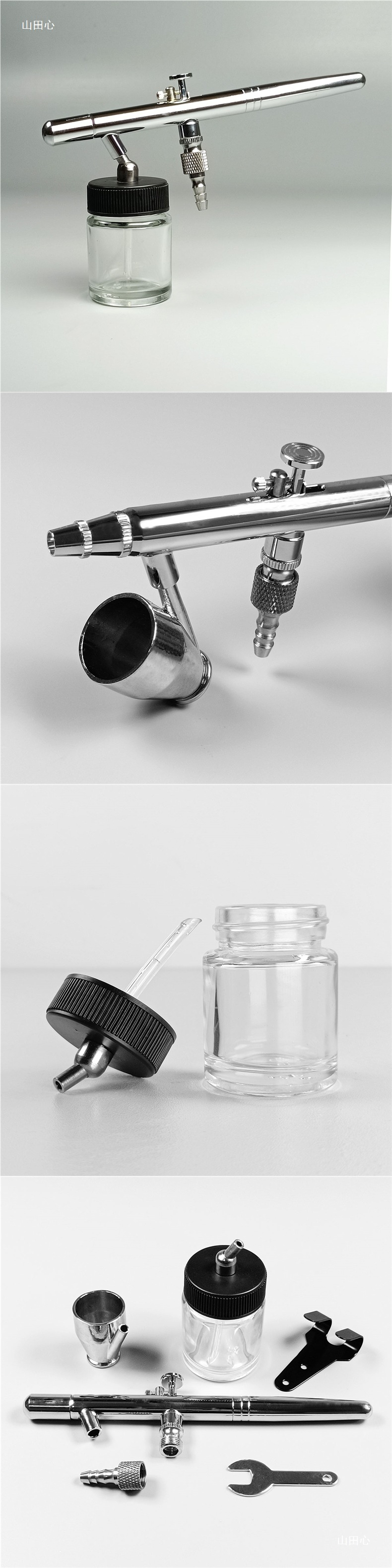 モデル 128 エアブラシ + クリーニングツール,小型角ポンプ+パイプ+フィルター,予備絵の具ポット 6個
