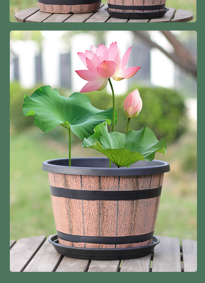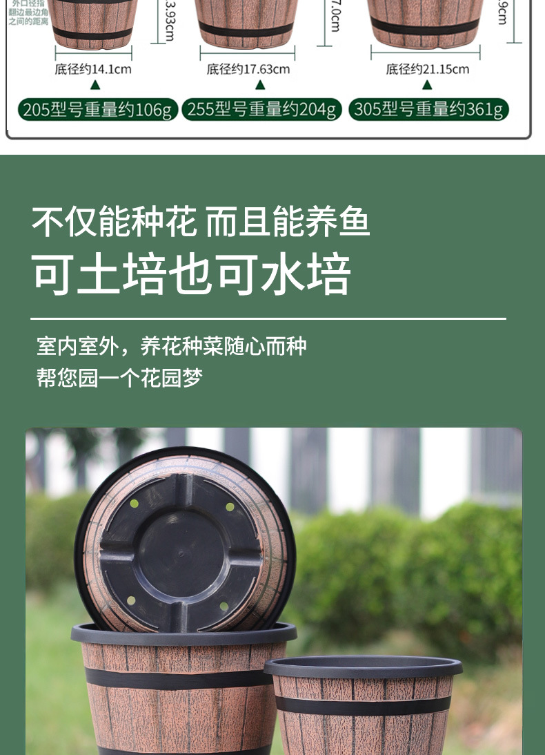 仿木桶酒桶塑料花盆加厚特大号无孔可水培铜钱草碗莲睡莲盆缸