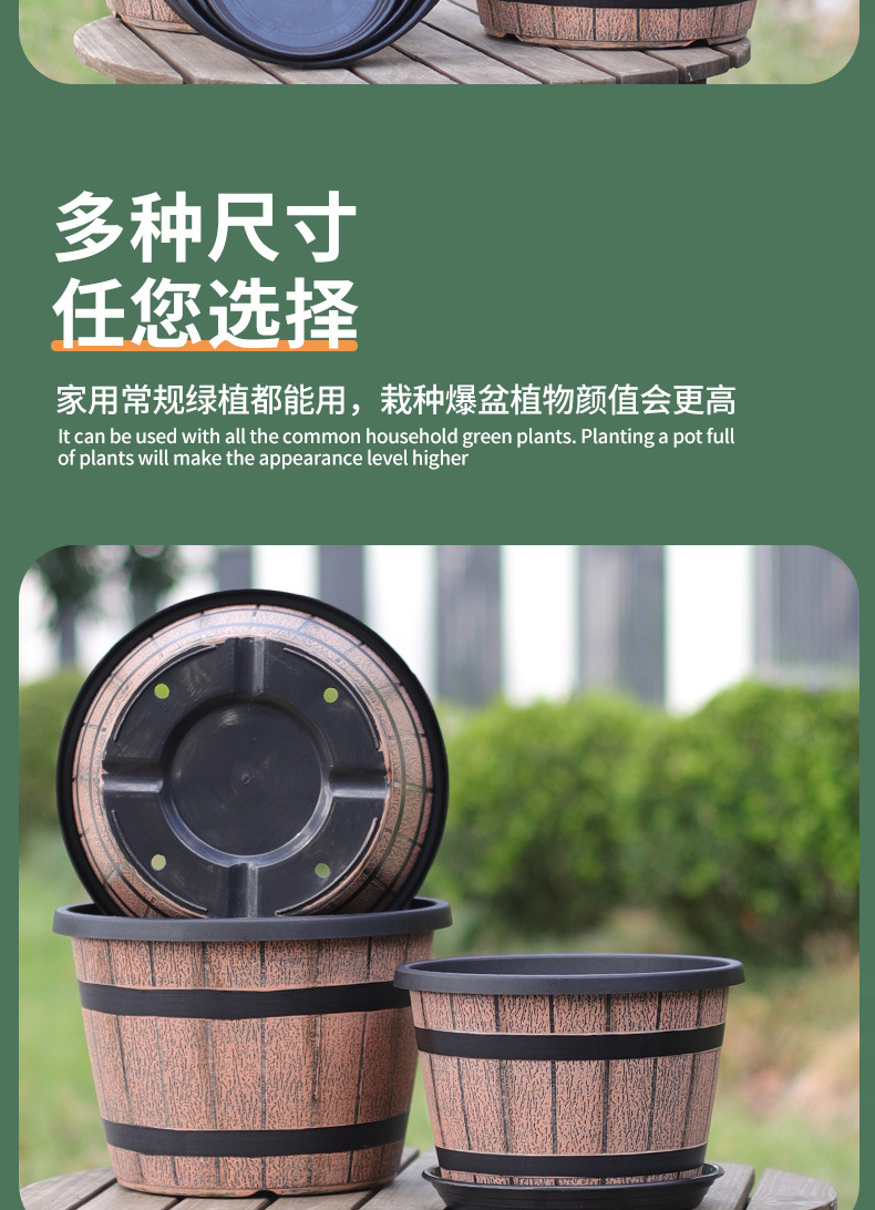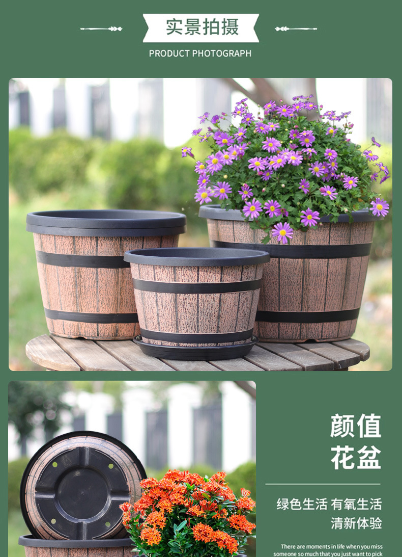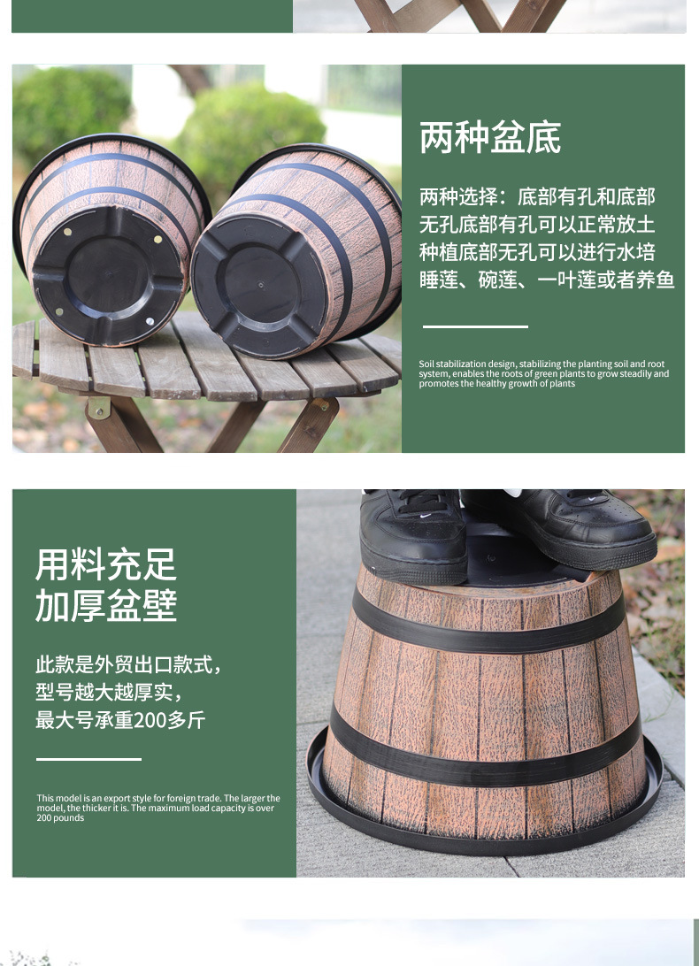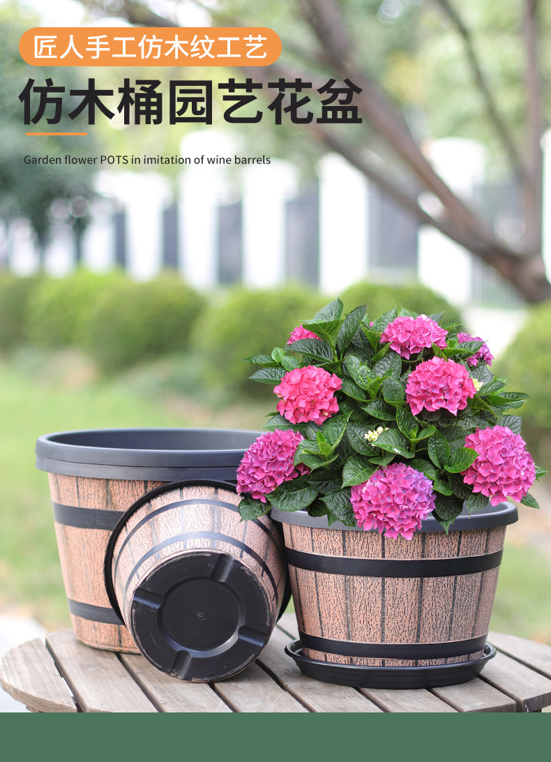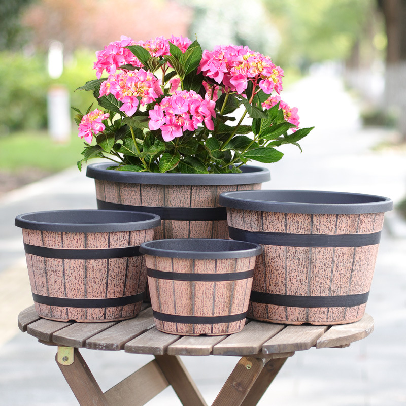 厚みのあるプラスチック模造木樽レトロ植木鉢園芸極楽鳥モクレンラウンド大型植木鉢大型植物植木鉢