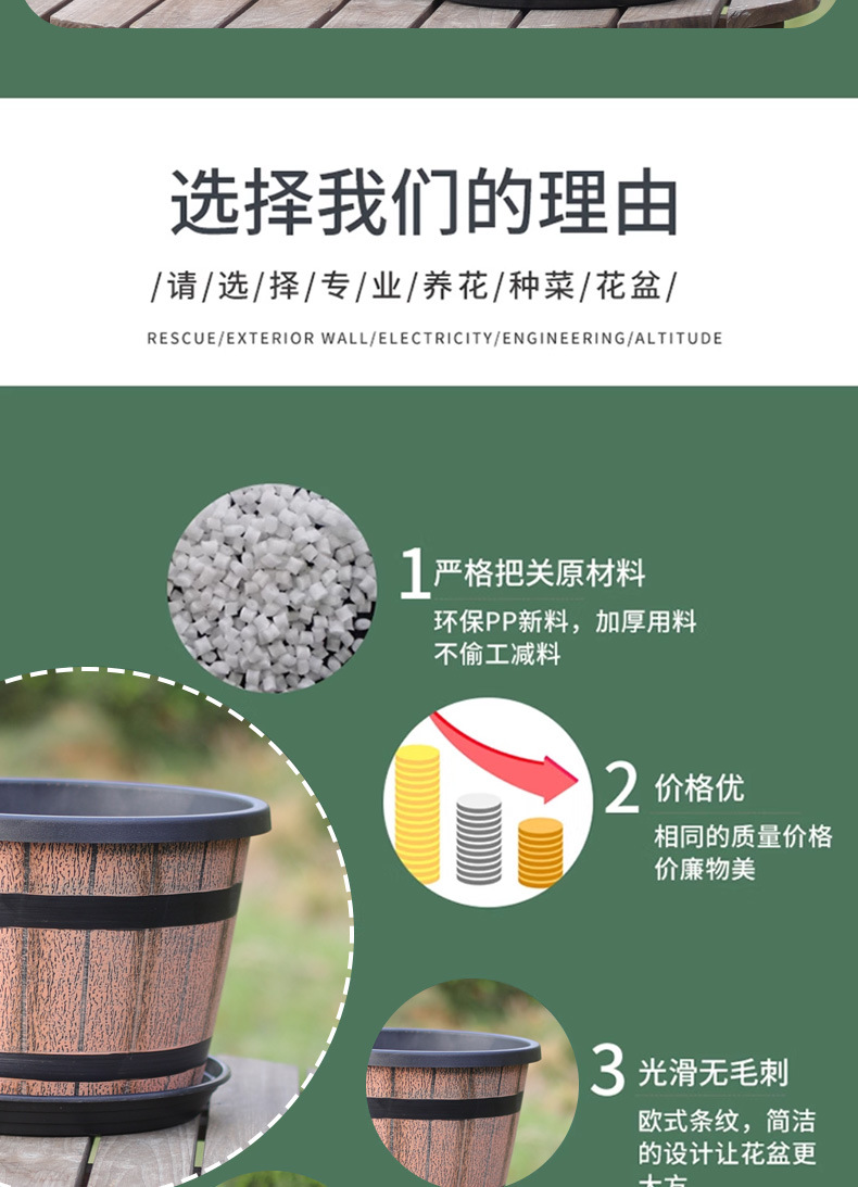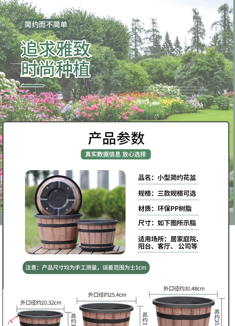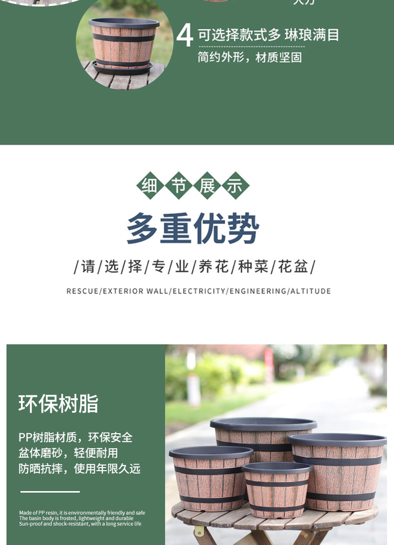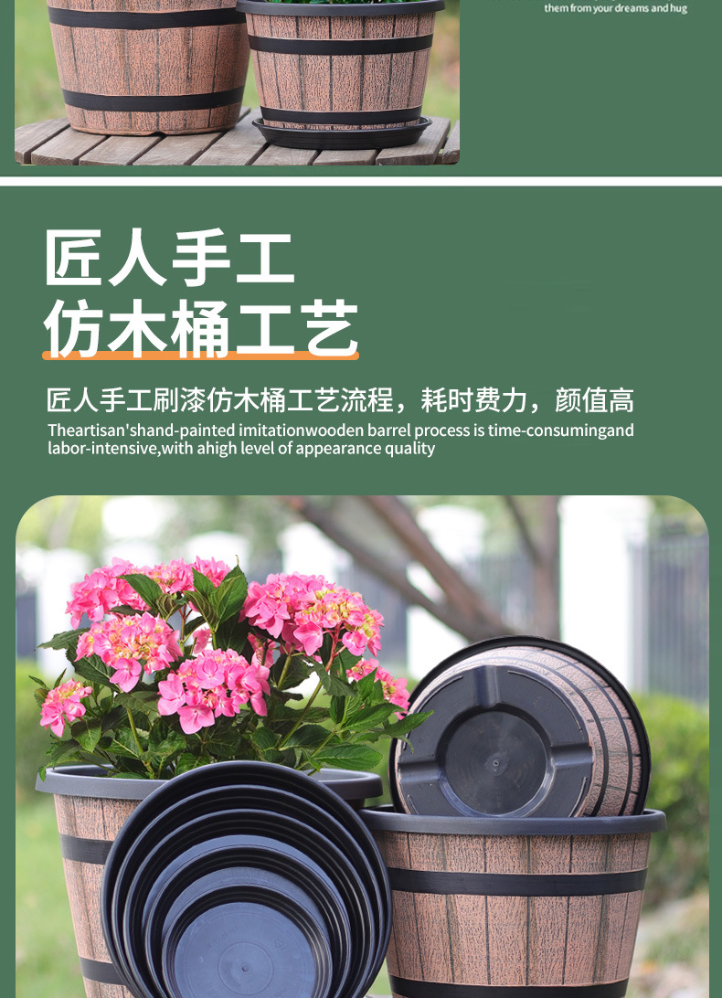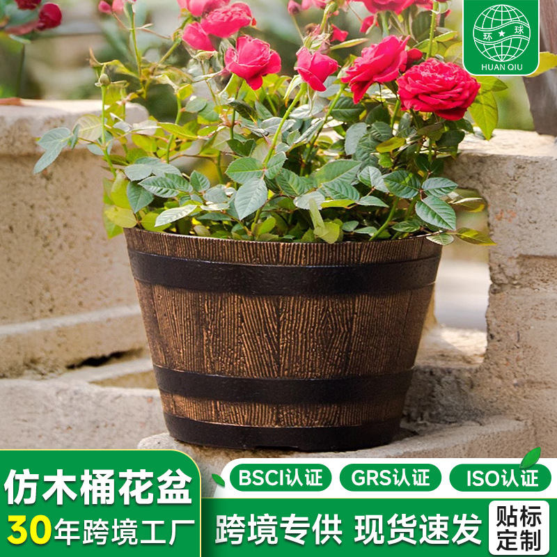 厚みのあるプラスチック模造木樽レトロ植木鉢園芸極楽鳥モクレンラウンド大型植木鉢大型植物植木鉢