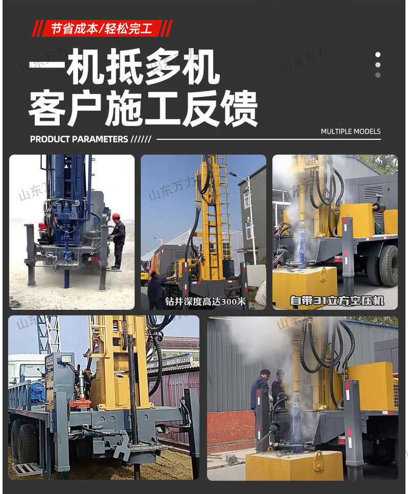 300メートルホイール式エア井戸掘削機牽引式エア掘削機大型油圧探査掘削機