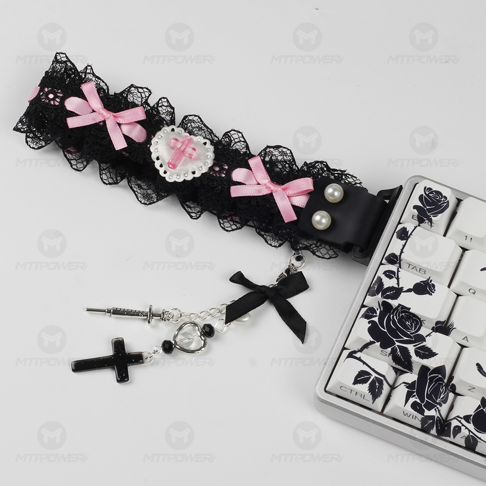 wooting蕾丝键盘飘带手工绸带猫耳朵装饰带键盘DIY改装配饰美加狮