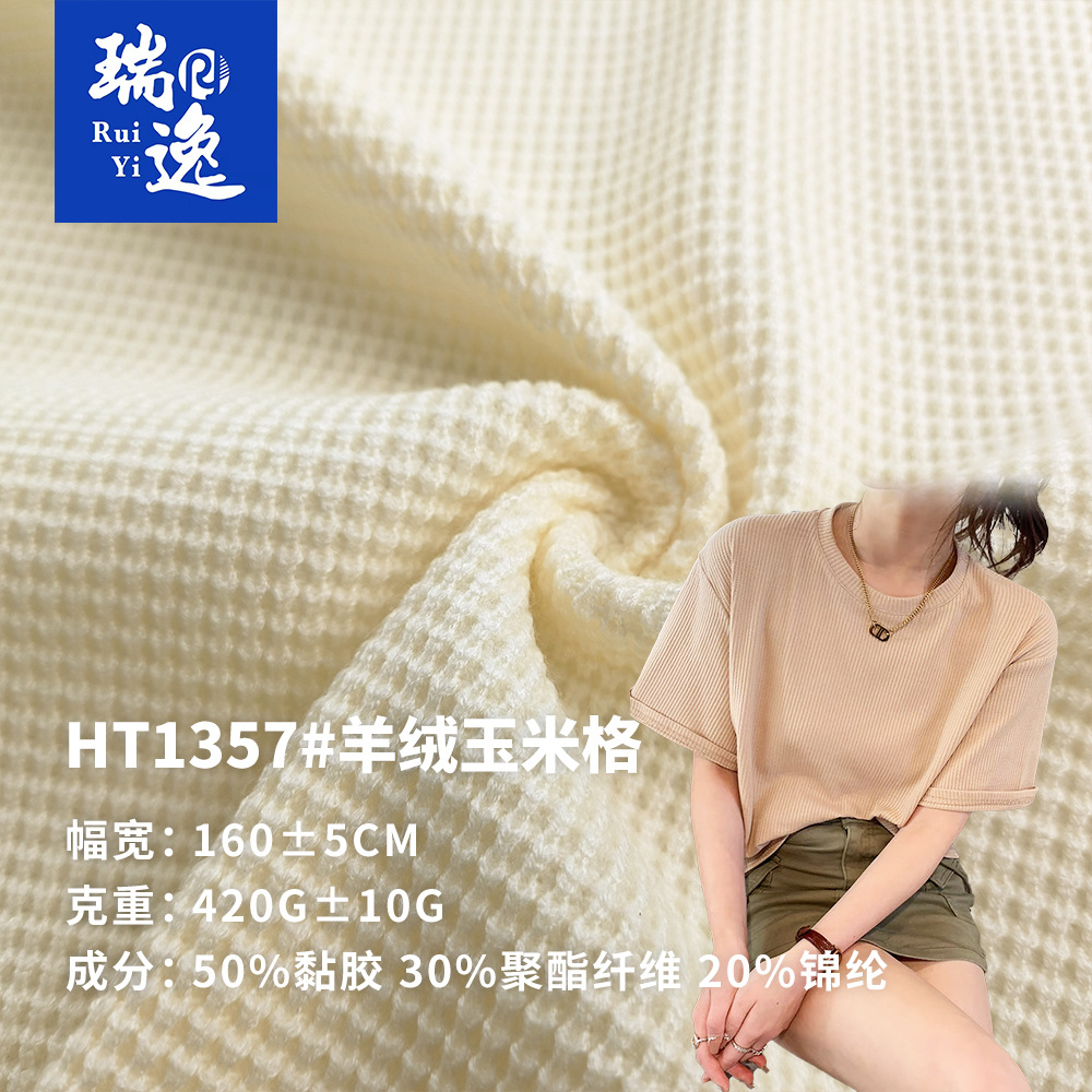 320 グラム秋と冬の凹凸チェック柄カシミヤワッフルニット生地厚みのある質感ホームウェア Tシャツスウェットシャツ生地