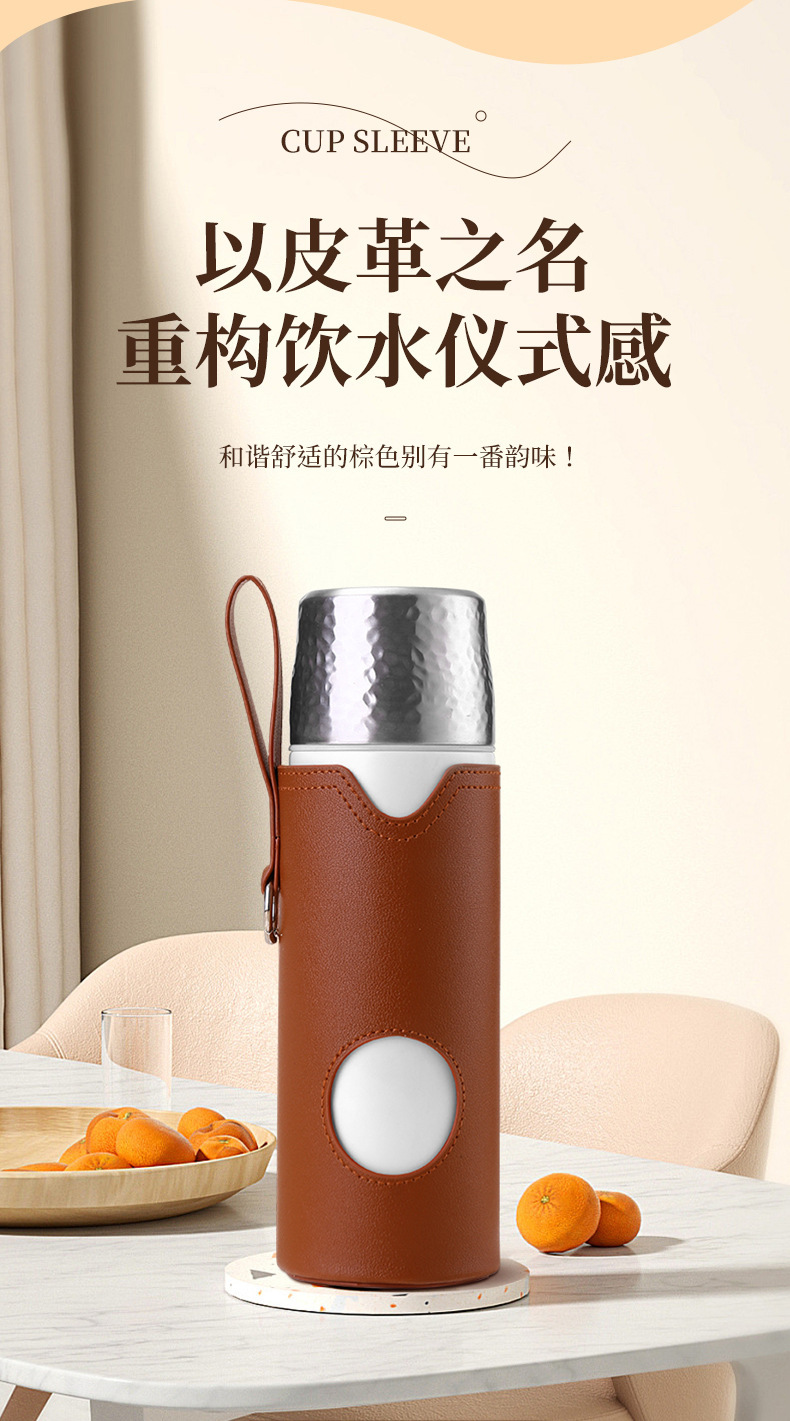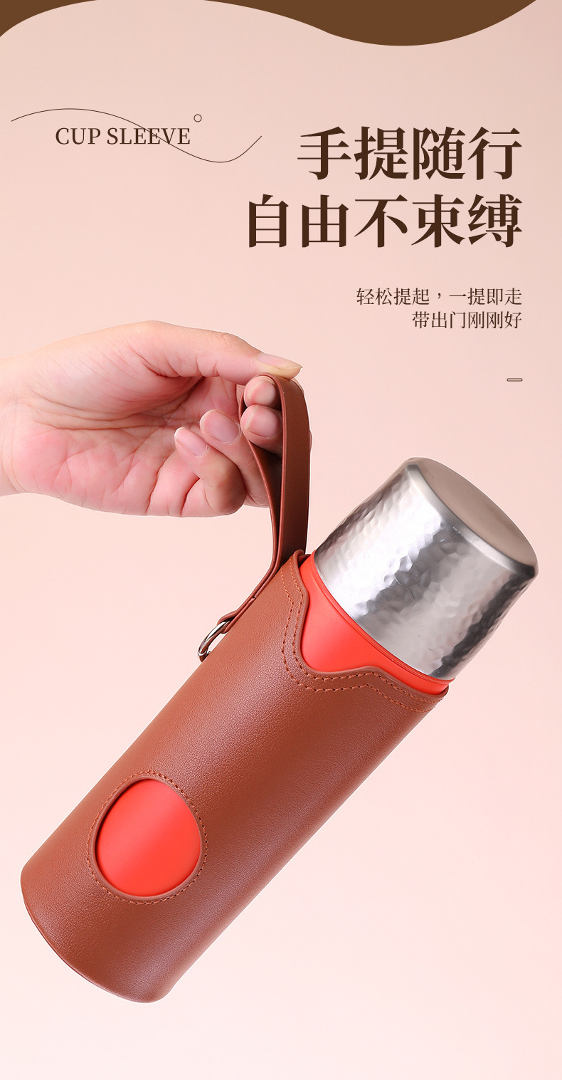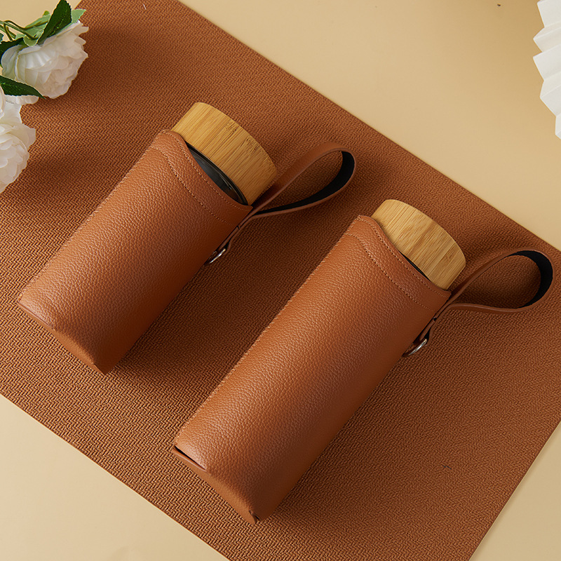 高档皮质杯套保温杯玻璃水杯保护套高颜值手提商务PU皮革水杯套子