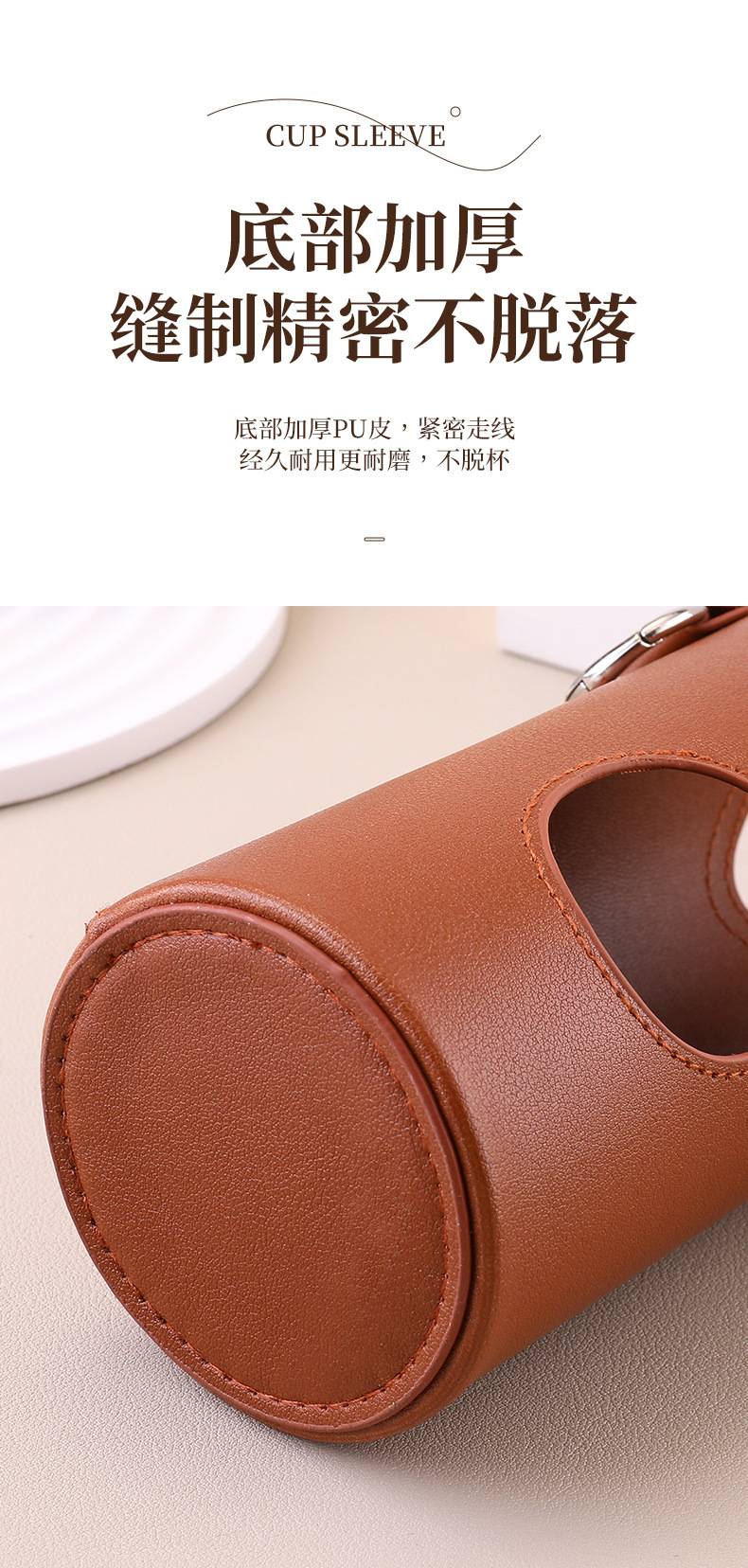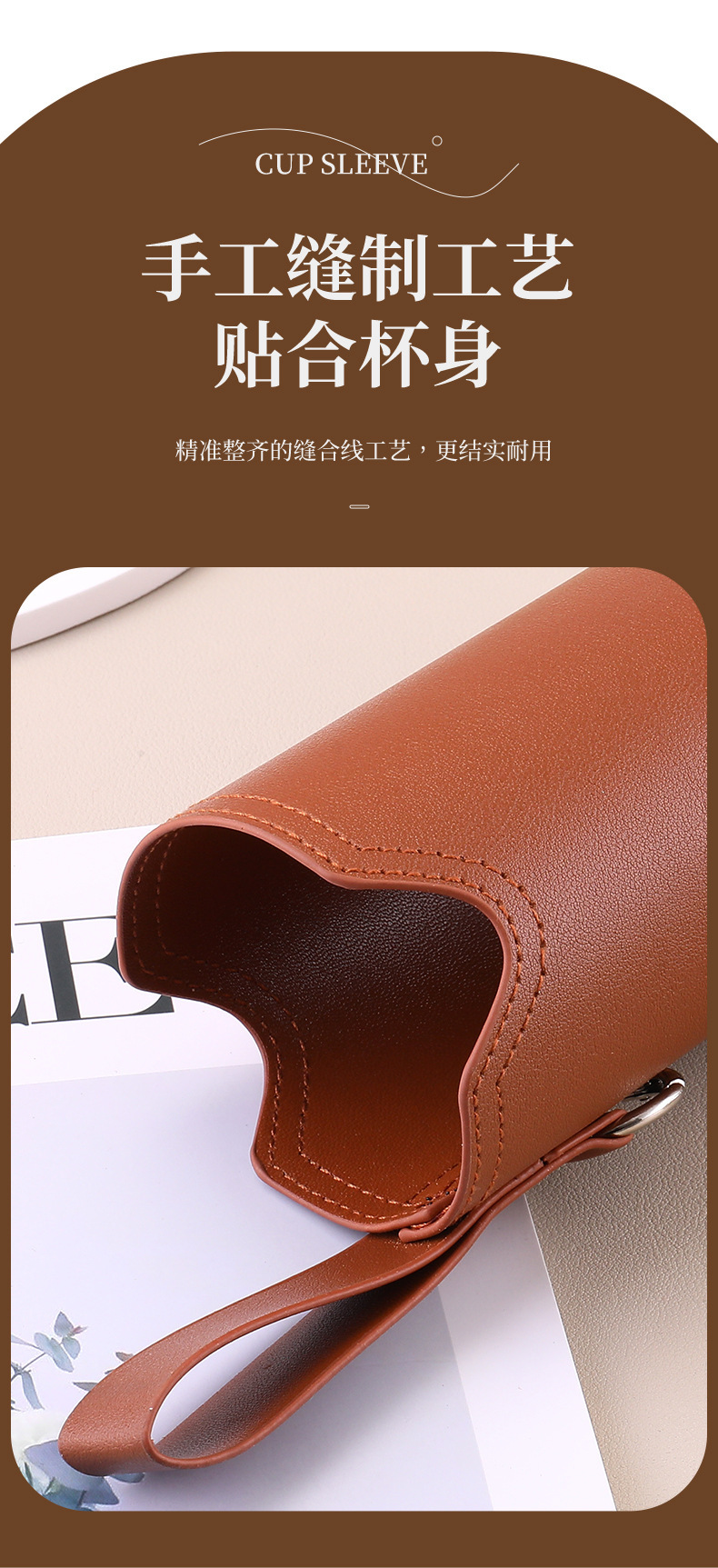 高級pu皮質カップカバー保温カップ高颜値帯手提げロープバックル汎用ガラスカップチタンカップ保護カバー