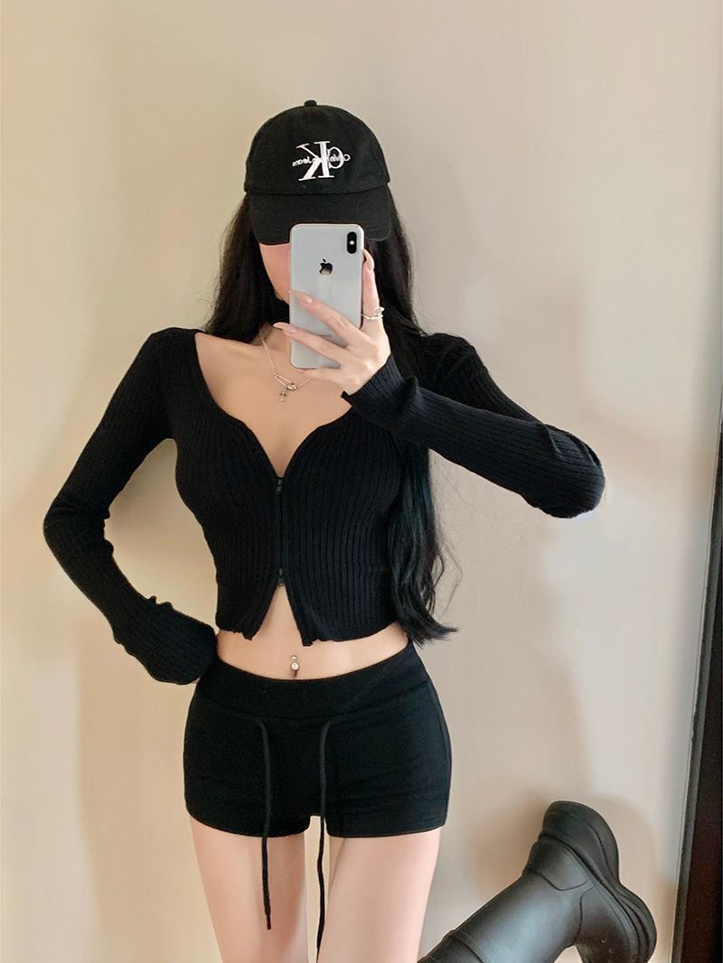 クロスボーダー卸売 ローウエスト 細見え カジュアルパンツ レディース 春物 ドローストリング ホットパンツ ヒップカバーパンツ タイトパンツ 黒パンツ