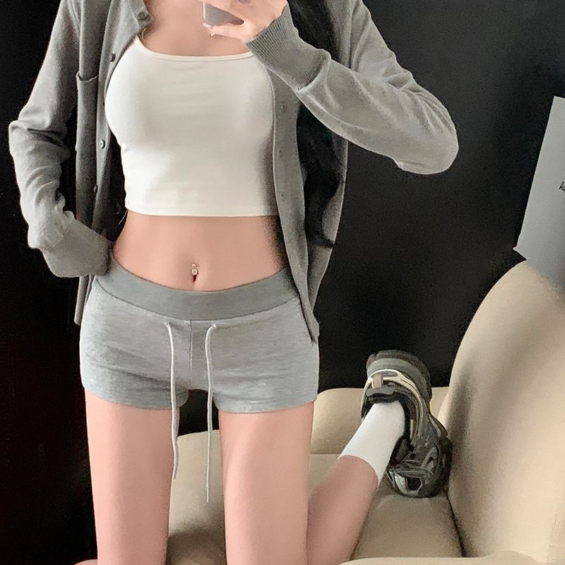 レッドホットガールスポーツショーツ女性の夏 2025 新しい小さな巾着ヨガヒップスリミングローウエストホットパンツ