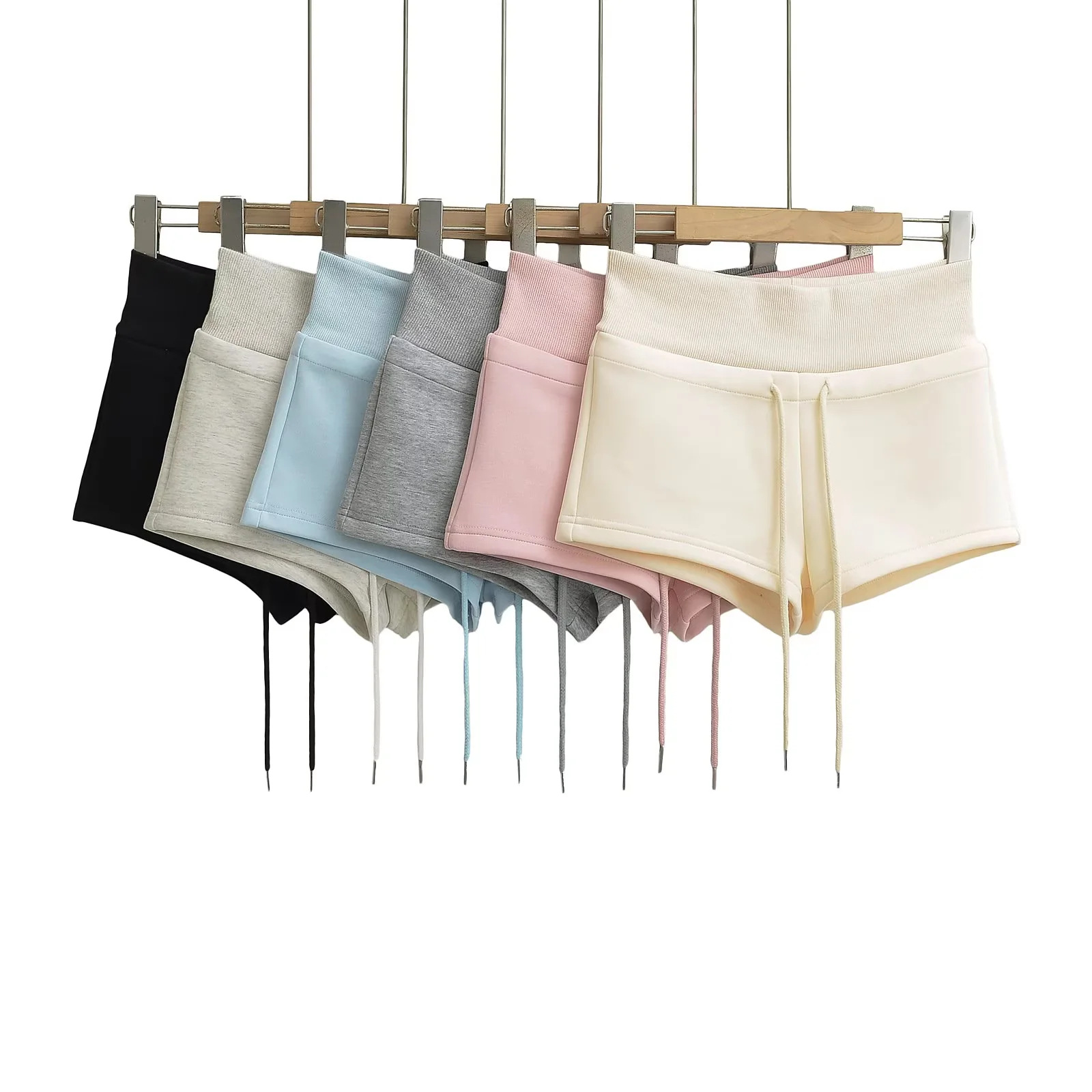 クロスボーダー卸売 ローウエスト 着痩せ効果 カジュアルパンツ レディース 春 ドローストリング ホットパンツ ヒップカバー タイトパンツ 黒パンツ