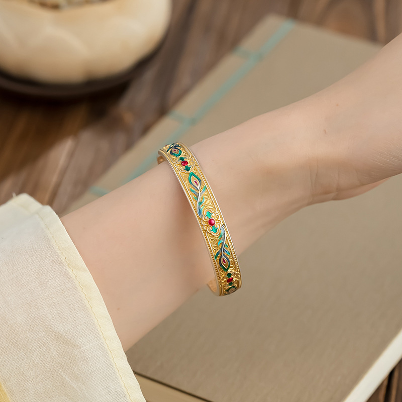 新しい中国風の古代スタイルの宋韻エナメルオープンブレスレット、ファッショナブルなレトロな宮殿スタイルのハイエンドの多用途ブレスレット
