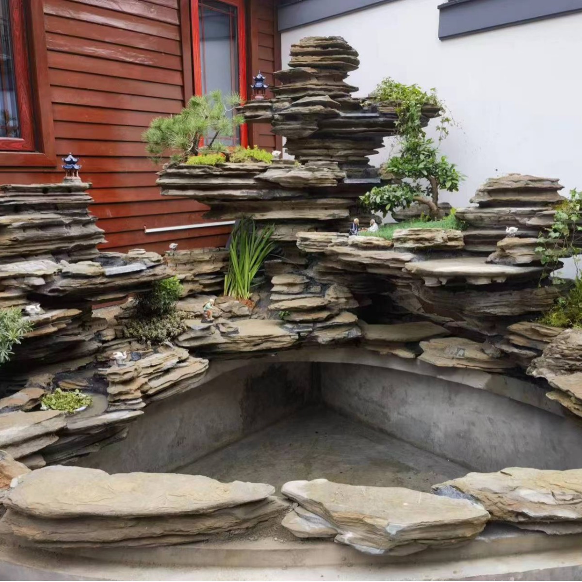 千層石築山庭園景観工事築山流水噴水庭魚池設計施工