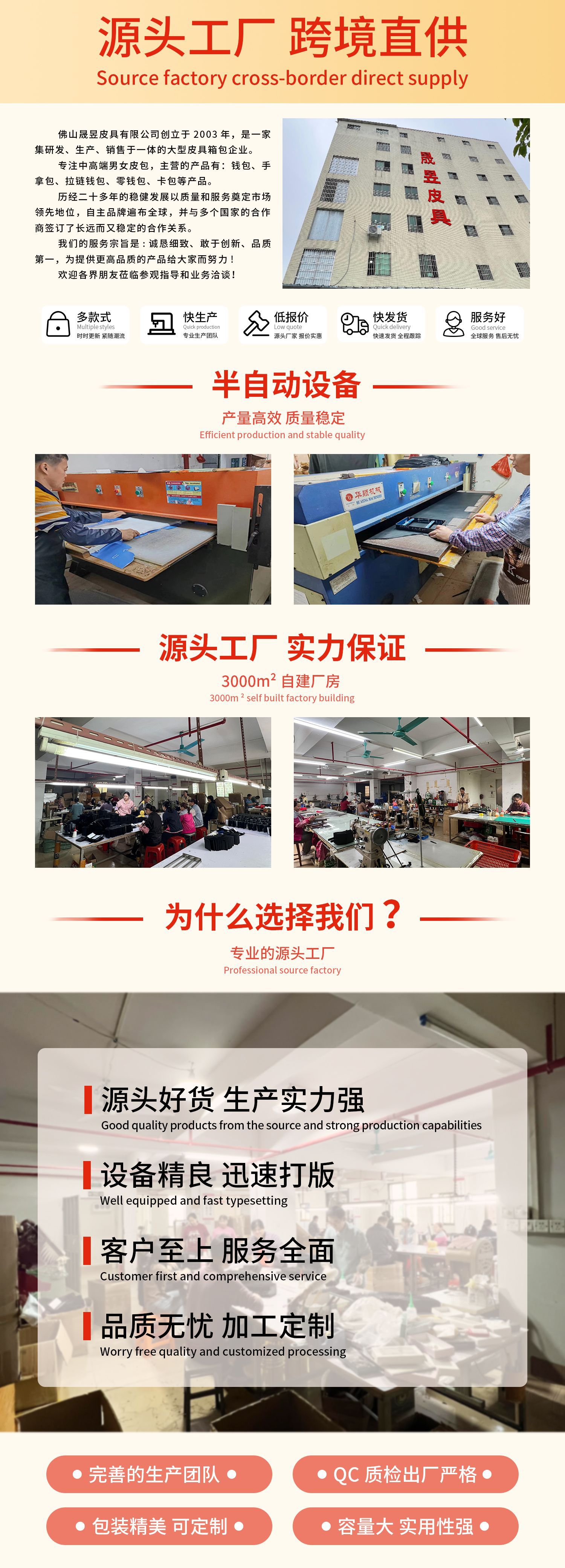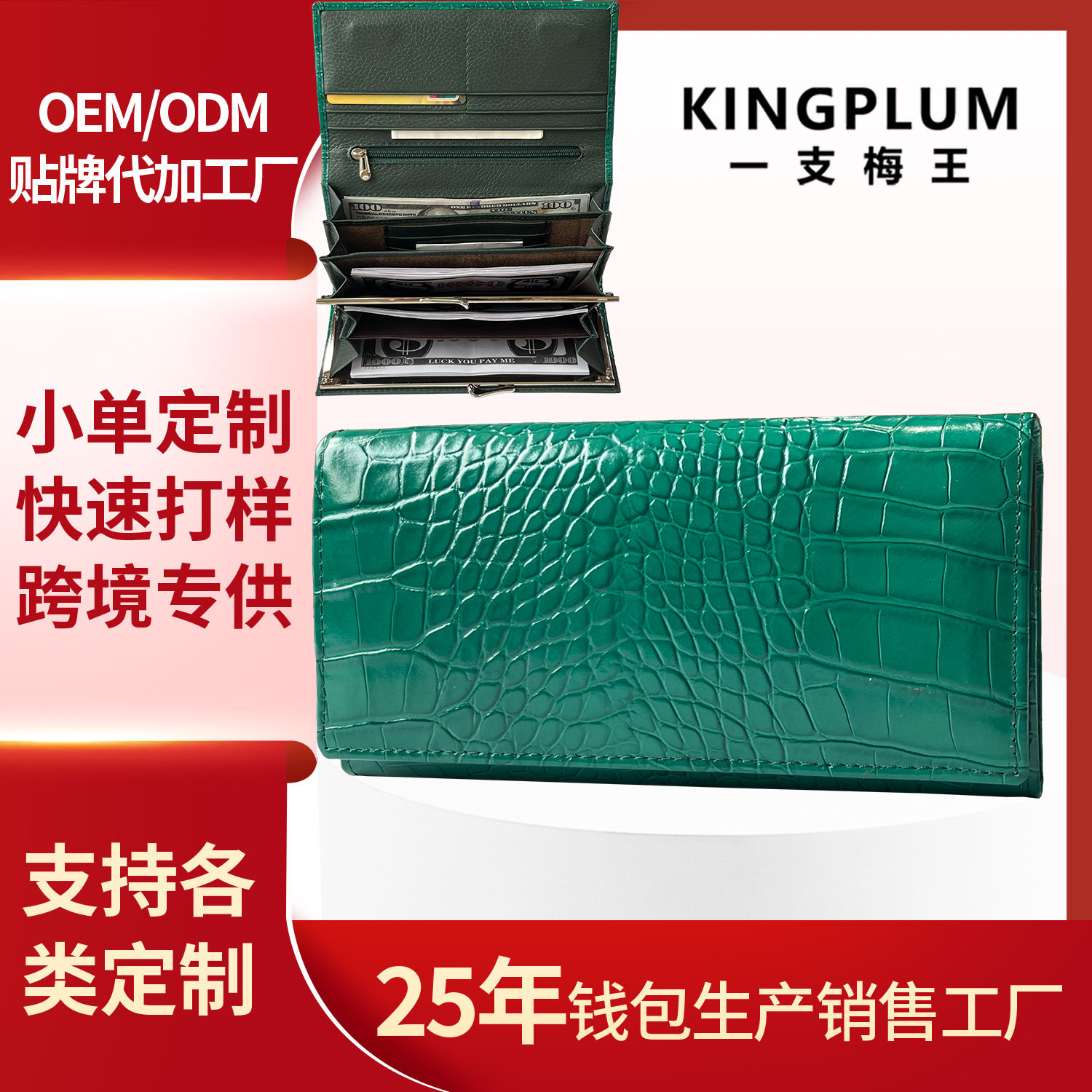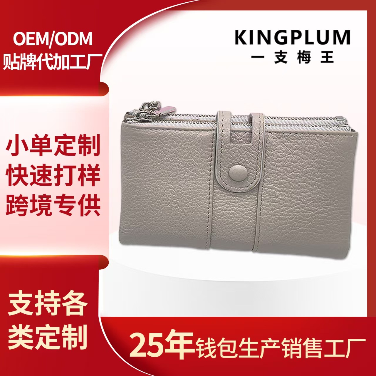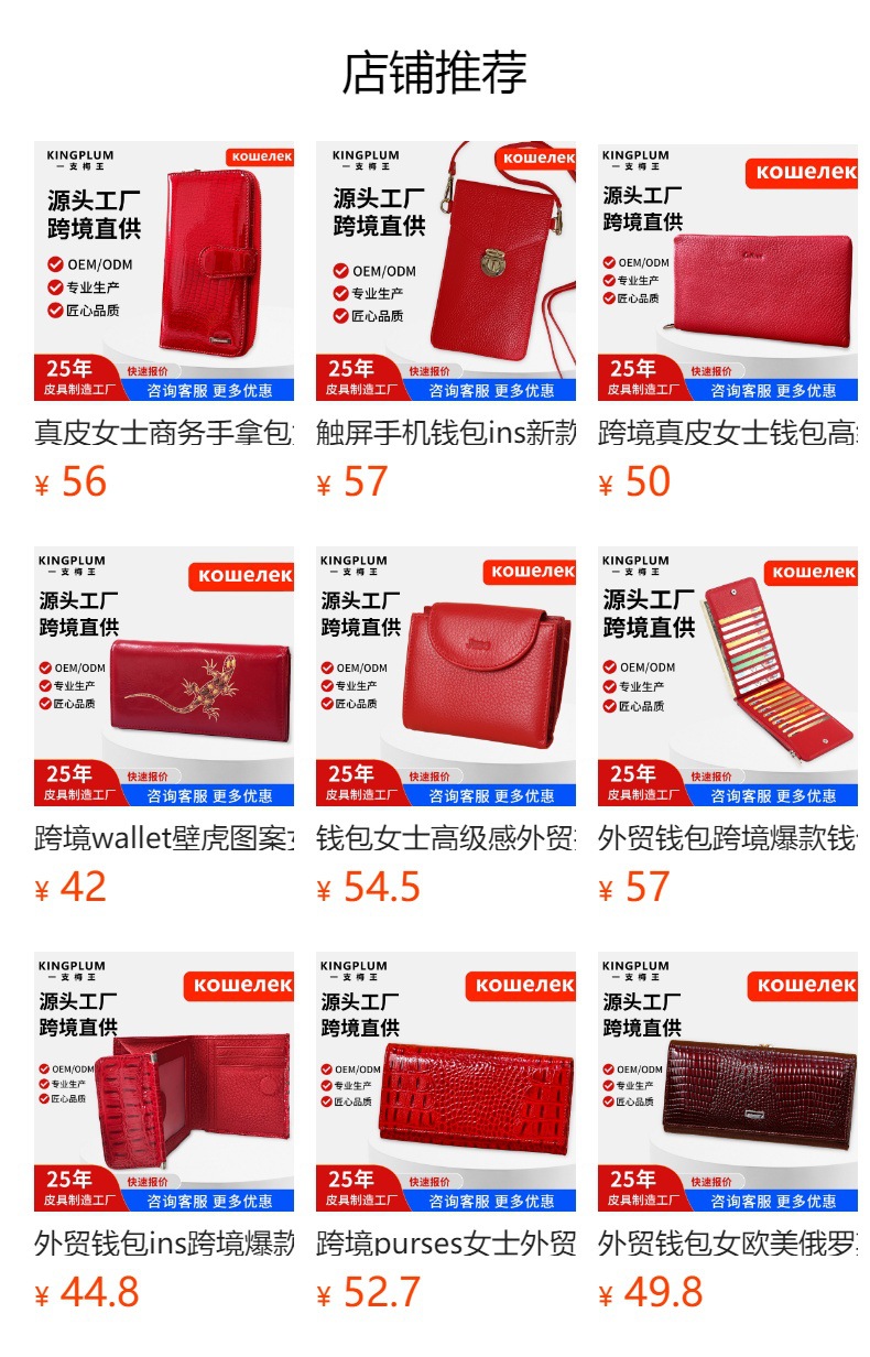 25年经验,专业真皮钱包代工定制工厂,可定制拿样。 现有刀模过百款, 现有模具支持小单定制。来图来样定制需要100个起订量。生产质量过硬,交期准时。量大优惠,专业客服提供咨询服务,欢迎咨询。