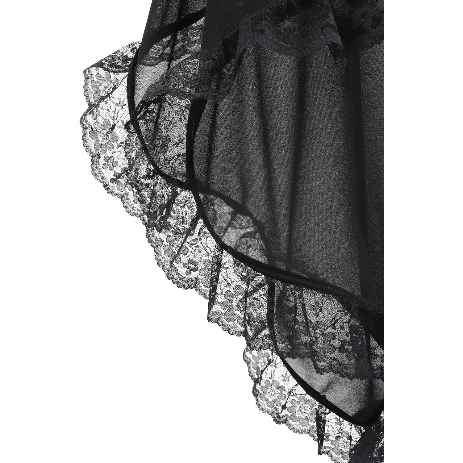 ゴシック薄い単層シフォン袖レーストリム白黒ロリータマッチングベルスリーブドレス