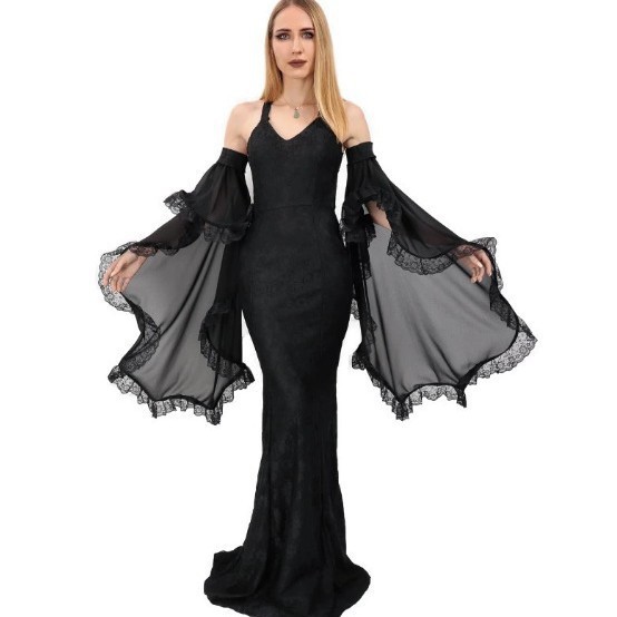 ゴシック式の薄いタイプの単層のシフォンの袖のカバーのレースの辺の通気性の白い黒色のロリータはスピーカーの袖の服を組み合わせます。