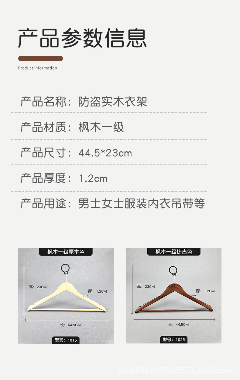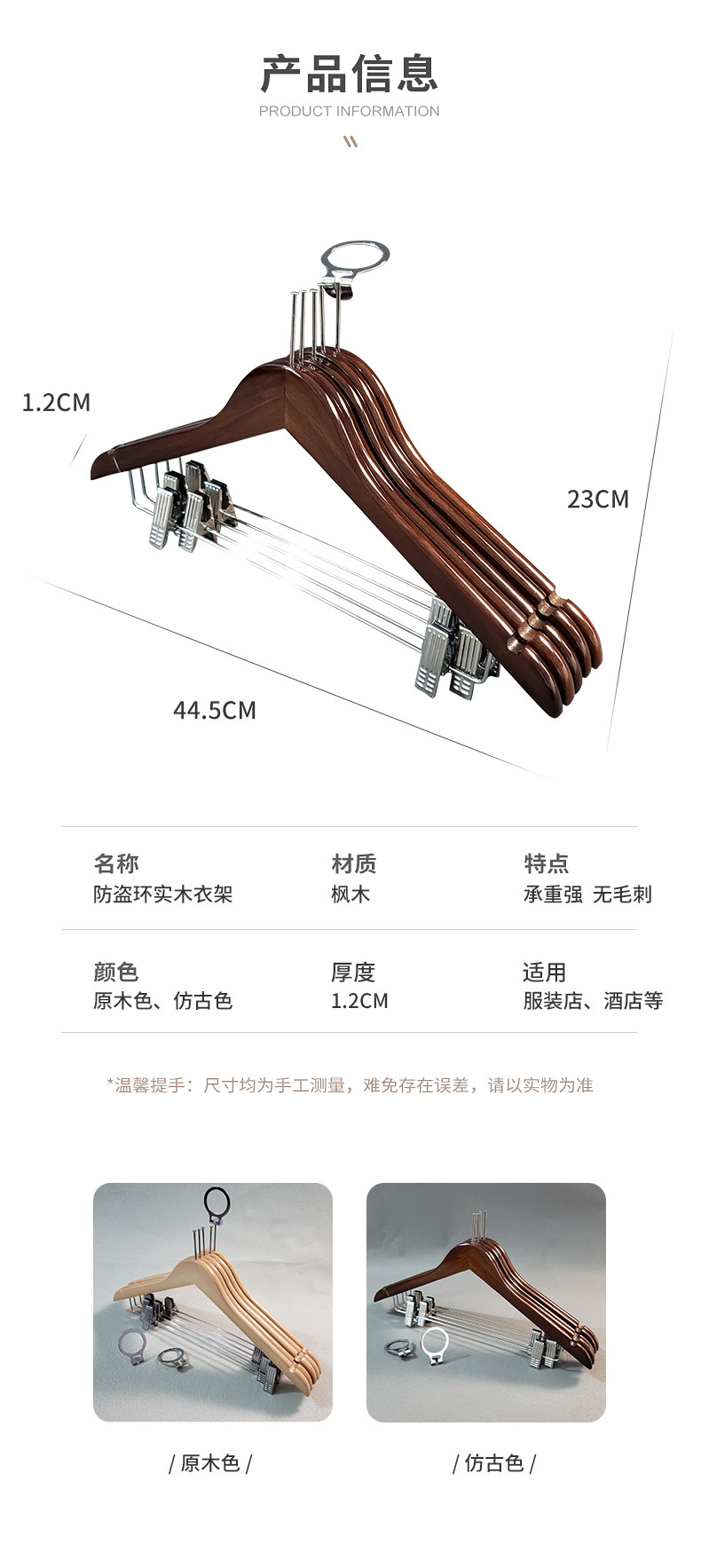メープル材盗難防止フックウッドカラー,メープル材盗難防止フック レトロカラー,スーツハンガー盗難防止フックウッドカラー,スーツハンガー盗難防止フックレトロカラー