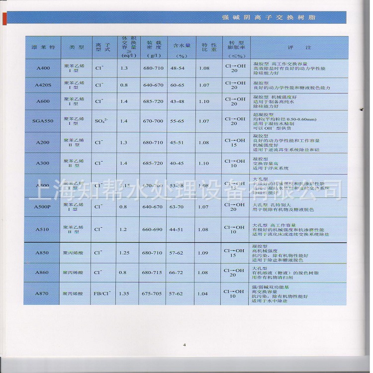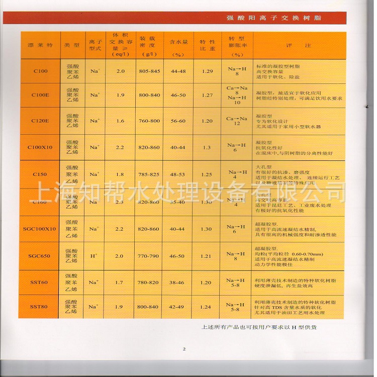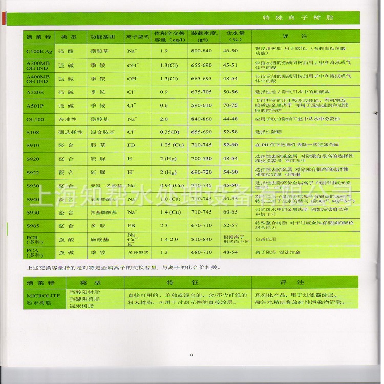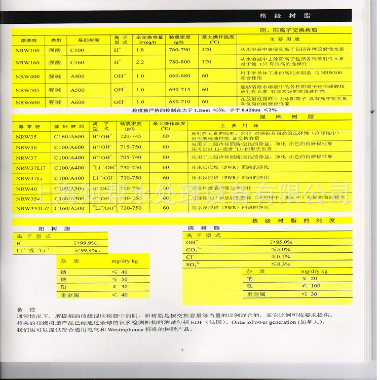 全交(钠型)-----------------------------------------------≥1.9eq/L湿树脂