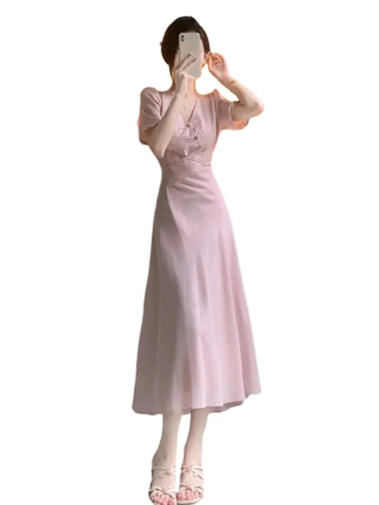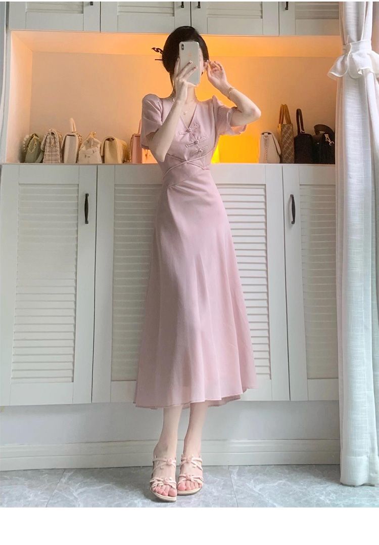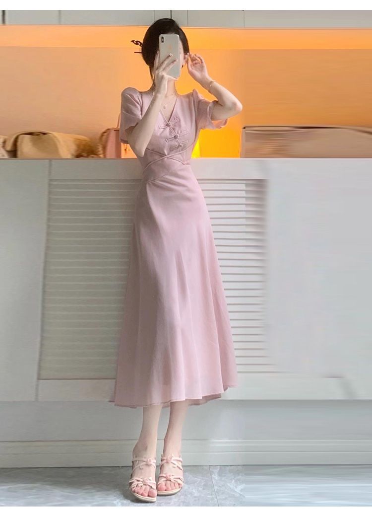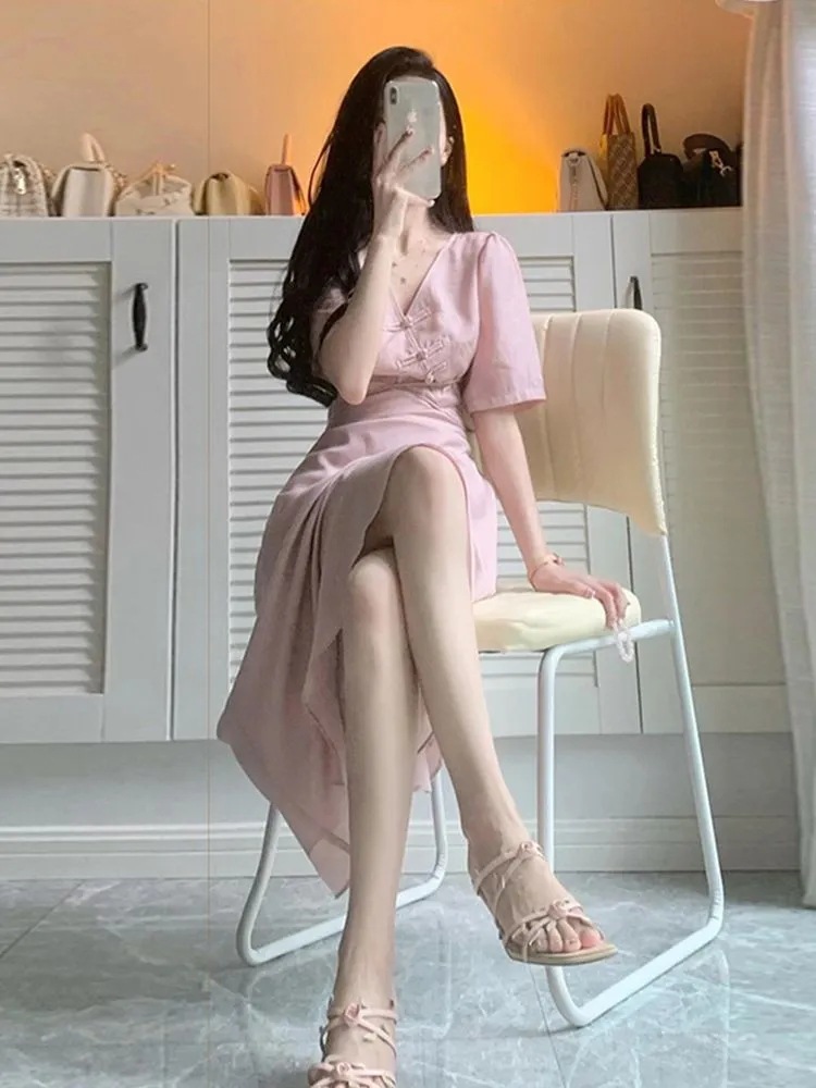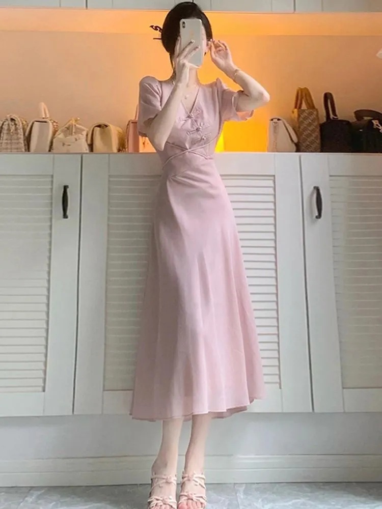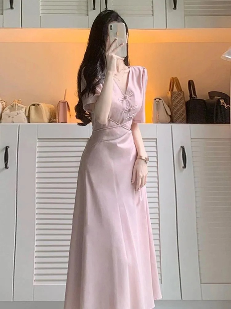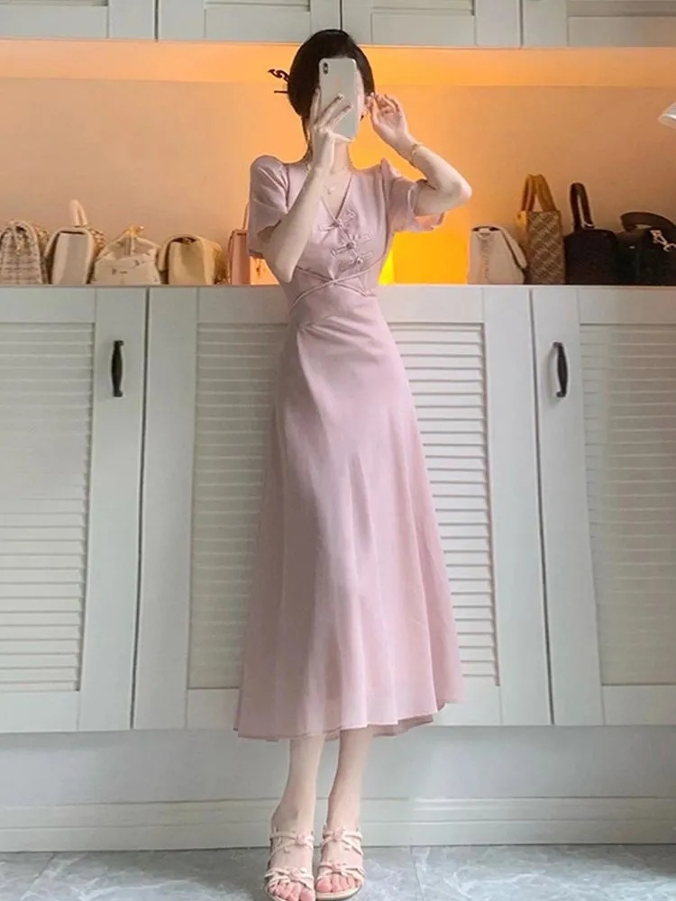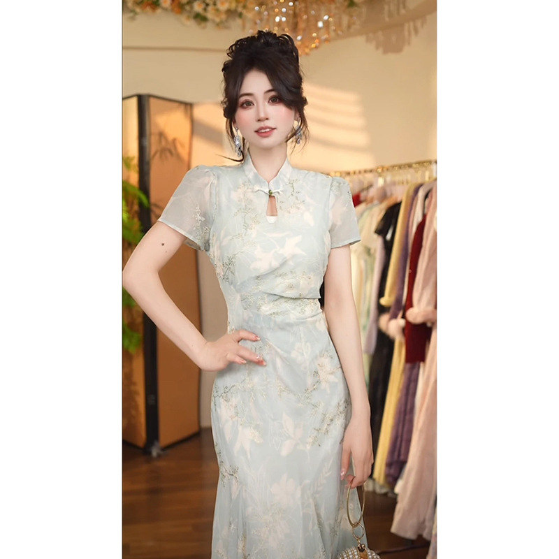 夏痩身婦人服新中国風デザイン改良されたチャイナドレス 2025 新しいドレスウエスト半袖ロングスカート