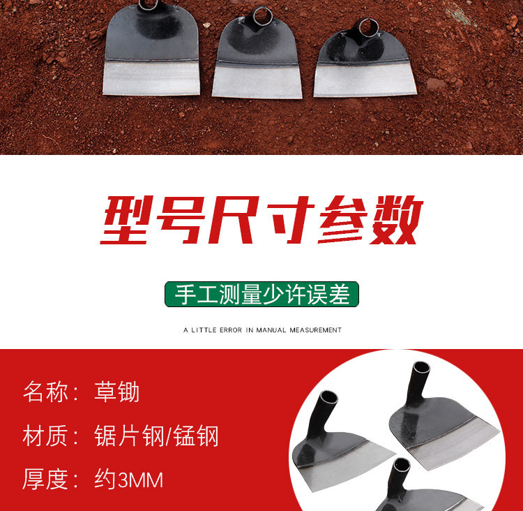 家庭用野菜や花の植え付け用の新しいマンガン鋼の小さな鍬、多機能の除草と掘削、全鋼の鍬、厚みのある屋外農業用鍬