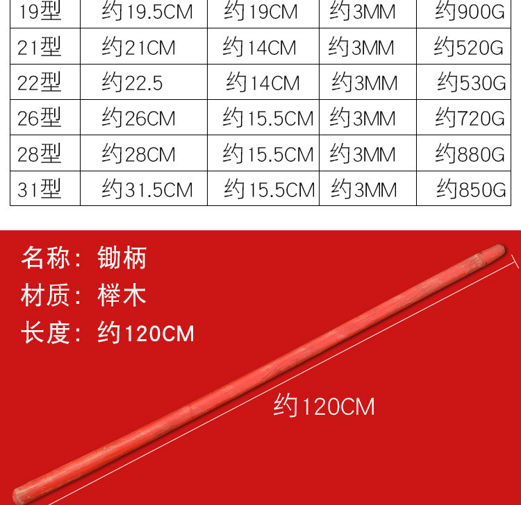 仕様とモデル 草鍬 21cm,草鍬 23cm,草鍬 26cm,草鍬 21cm + 木製ハンドル (1.2m),草鍬23cm+木柄(1.2m——,草鍬 26cm + 木製ハンドル (1.2m)