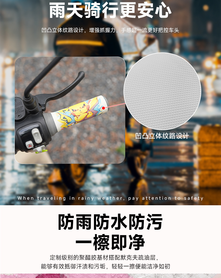 電動車のハンドル滑り止めステッカー漫画かわいいバイク自転車グリップハンドルステッカー防水吸汗通気