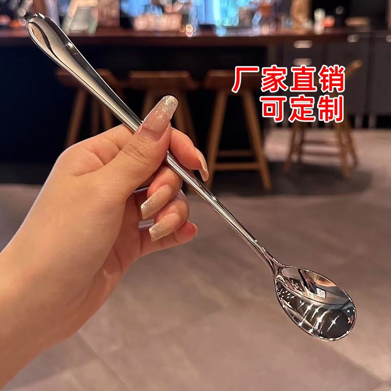 ステンレススプーンサブネット赤撹拌棒家庭用長柄韓国式氷スプーン撹拌スプーンスプーン蜂蜜デザートスプーン