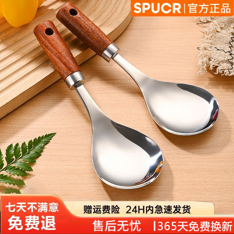 SPUCR官方正品不锈钢饭勺加厚分餐子创意木柄家用打饭耐高温饭铲
