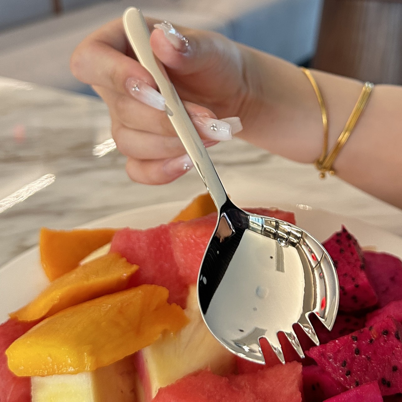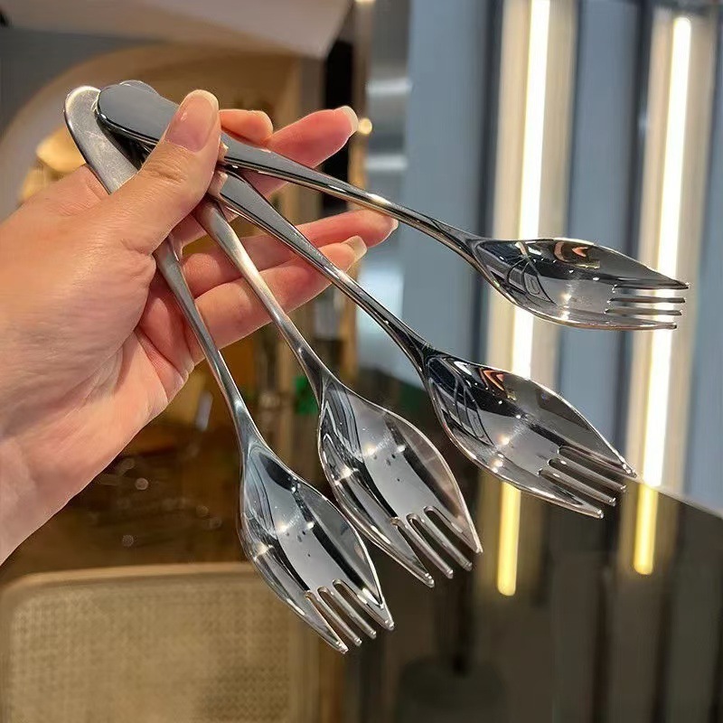 ステンレスサラダスプーン一体家庭用ホテルスイカスプーンフォーク両用歯付きスプーン洋食デザートスプーン卸売り