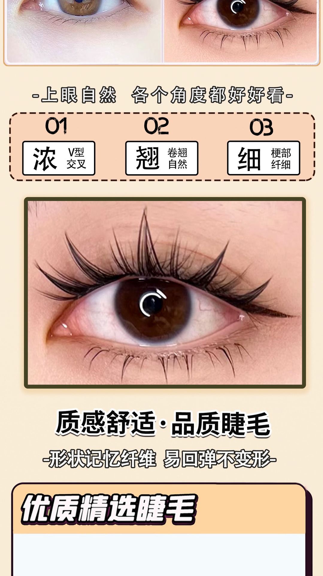 自然に厚くカールした、長くて柔らかい上まつげ、怠惰な初心者向けの分割トリロジー、ツール不要の中国製