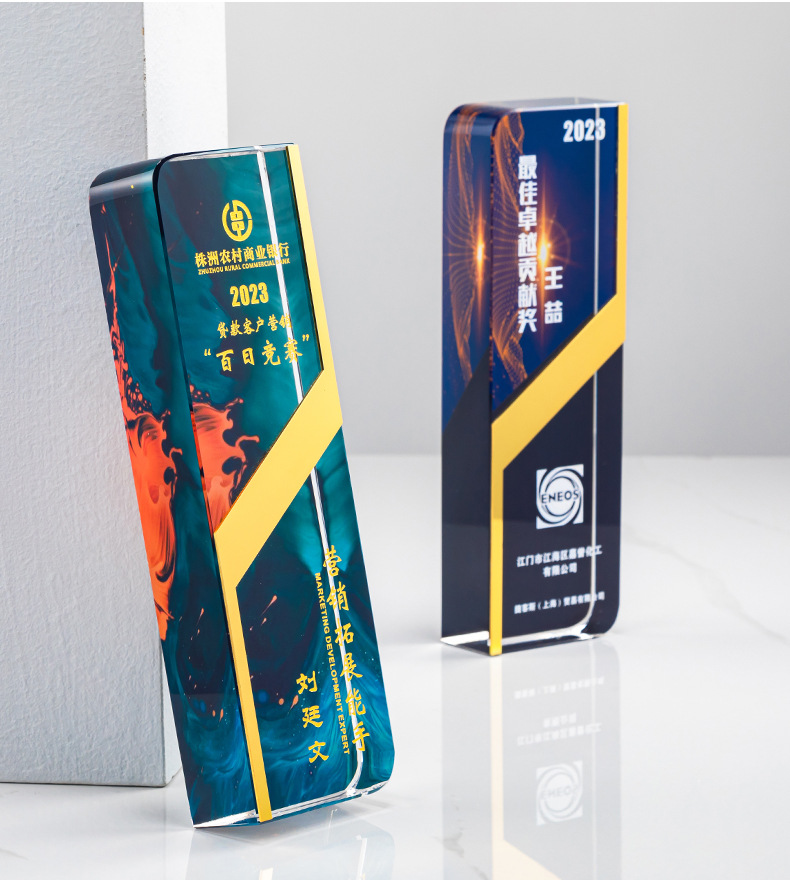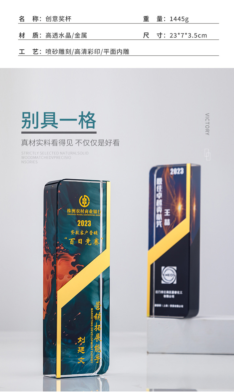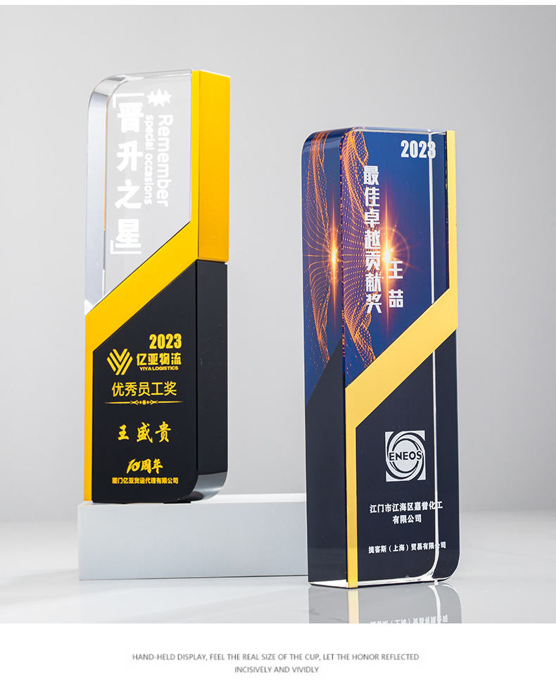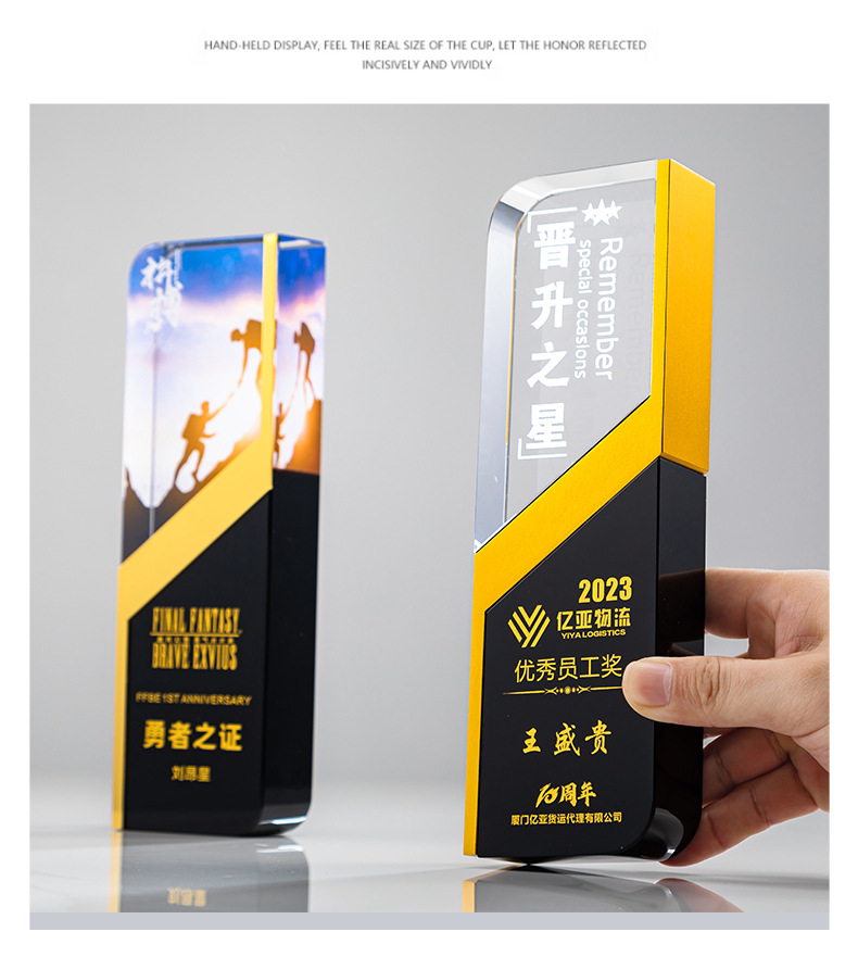 カラフルなクリスタルトロフィー金属スプライシングカスタマイズされた優秀な従業員賞年次総会名誉記念品トロフィー