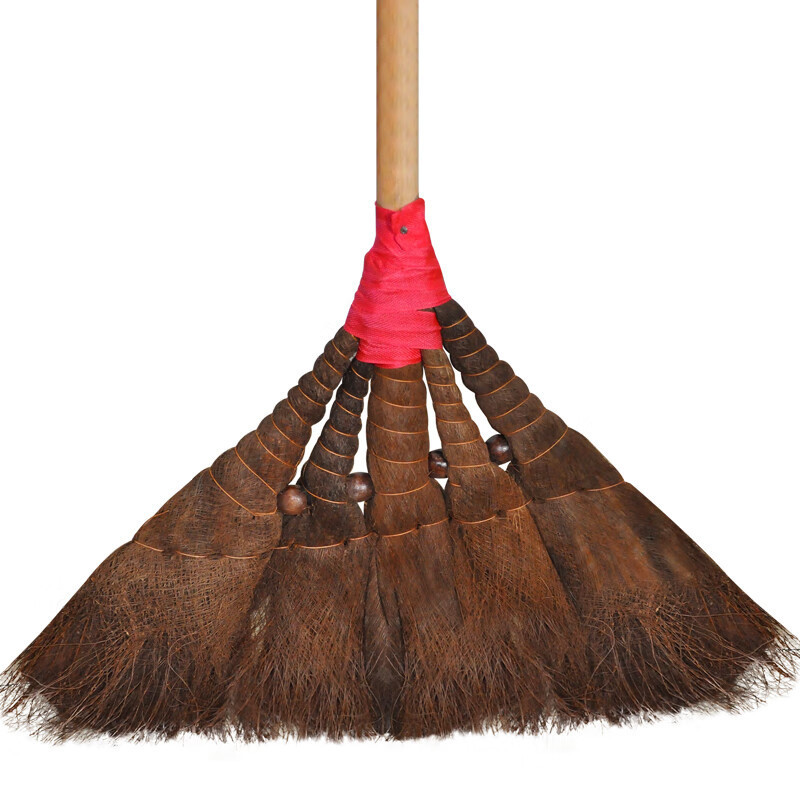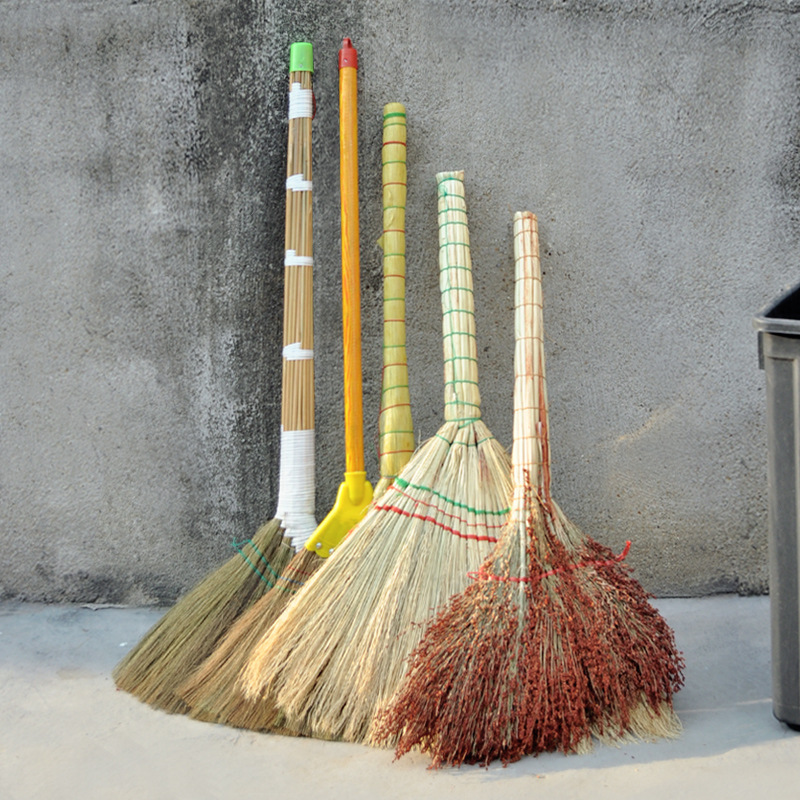 木製パームほうき、昔ながらの茶色の毛のほうき、工場作業場のちりとり、庭の掃除用の長い柄のほうき
