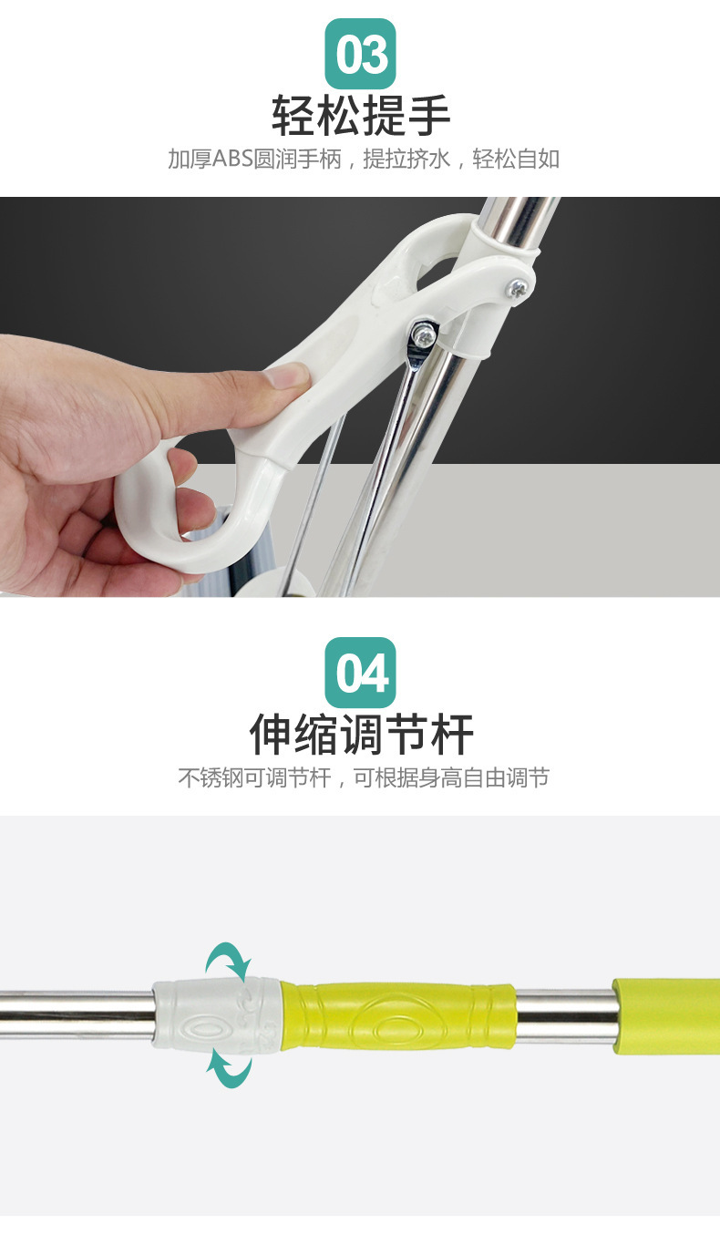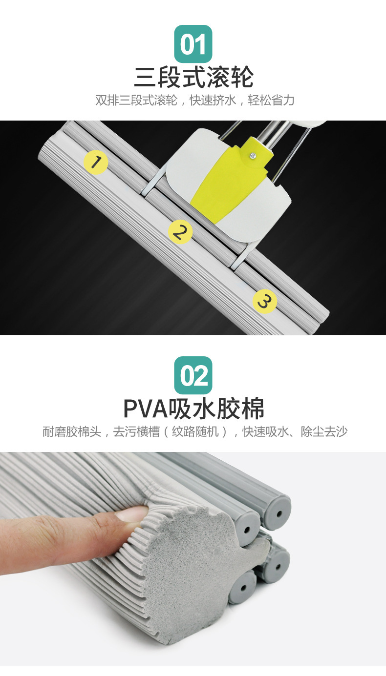 コロイドモップ、ハンズフリーローラータイプ、伸縮ロッド、水平プレートモップ、吸水性コロイドモップ