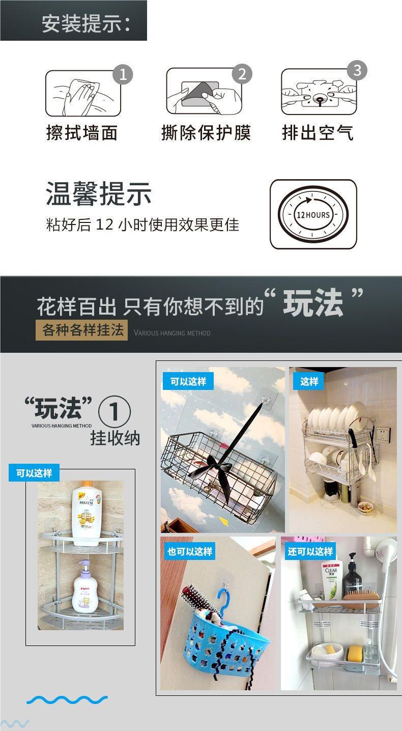 強力フック、粘着フック、パンチフリーフック、壁用粘着式超強力跡なし粘着壁掛けキッチンフック