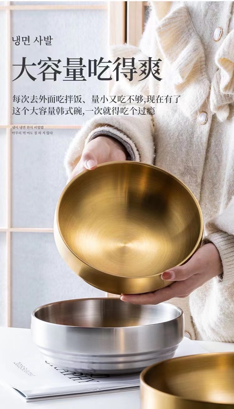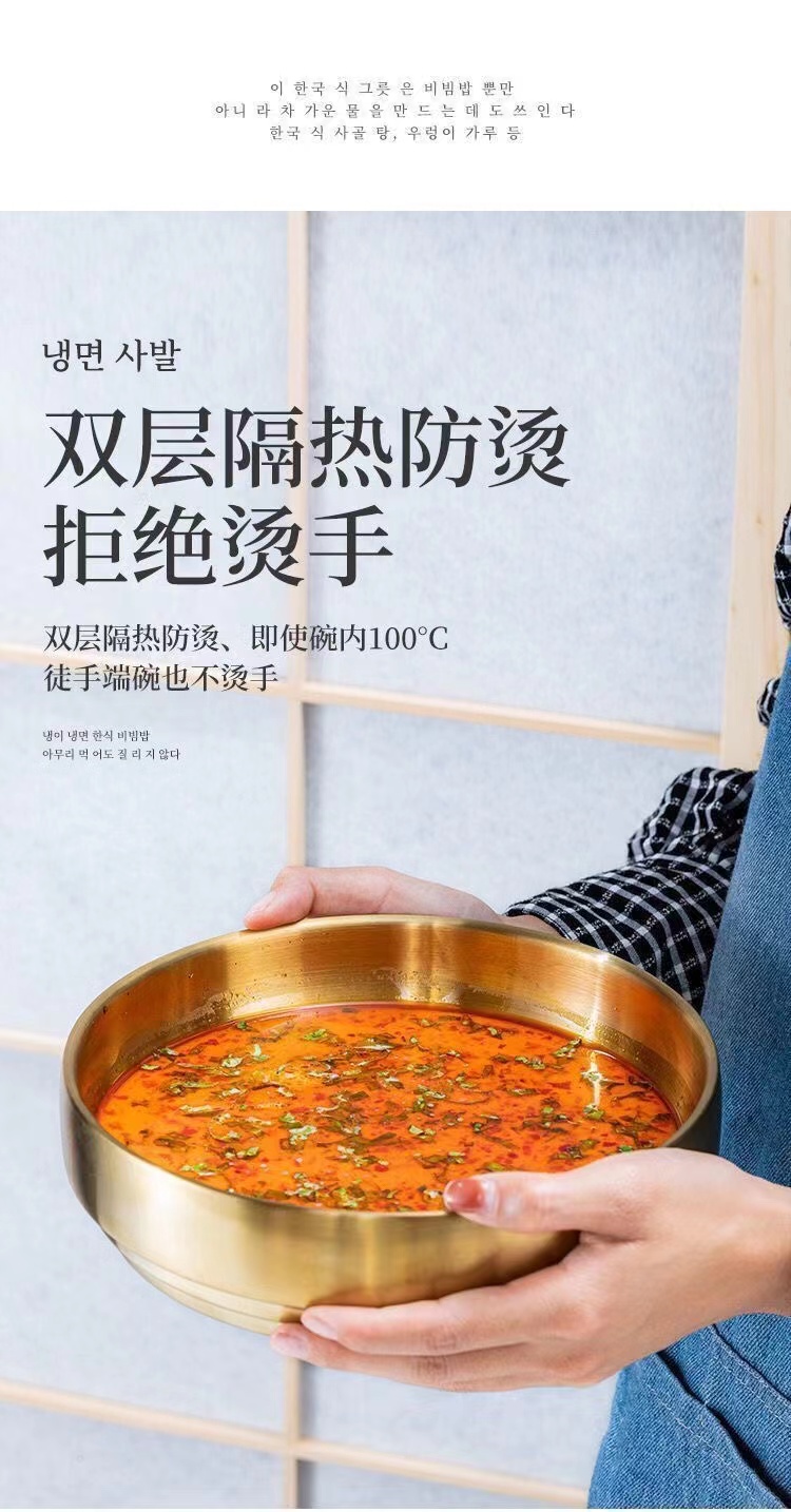 韓国黄金冷麺ボウル、韓国延辺食器、金延美村ビビンバ、同じソースボウル、二層火傷防止スープボウル