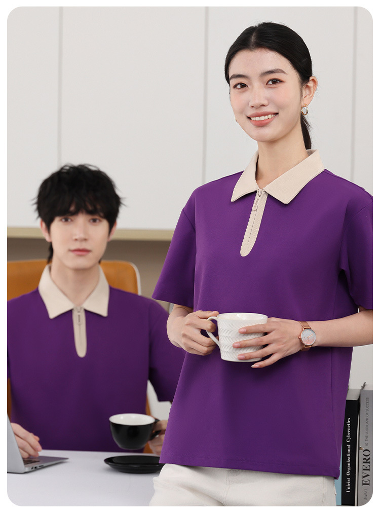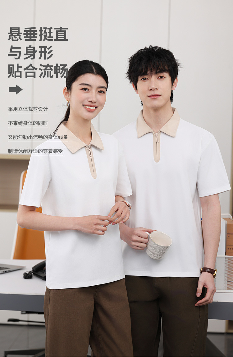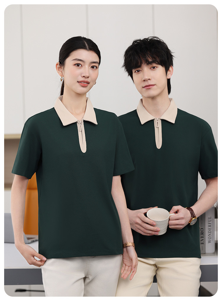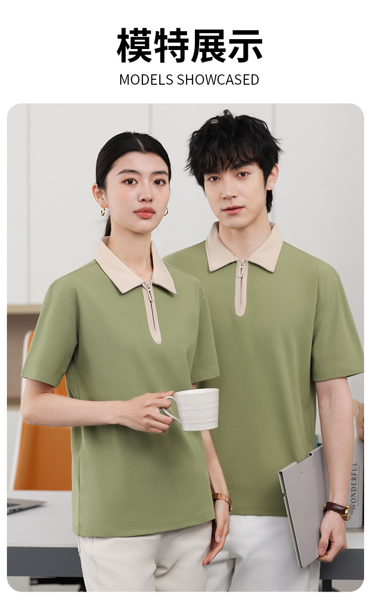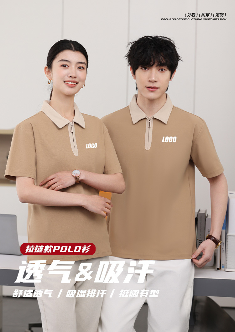 ジッパーラペル半袖ポロシャツ作業服広告シャツ半袖Tシャツ男性と女性の作業服文化シャツロゴ