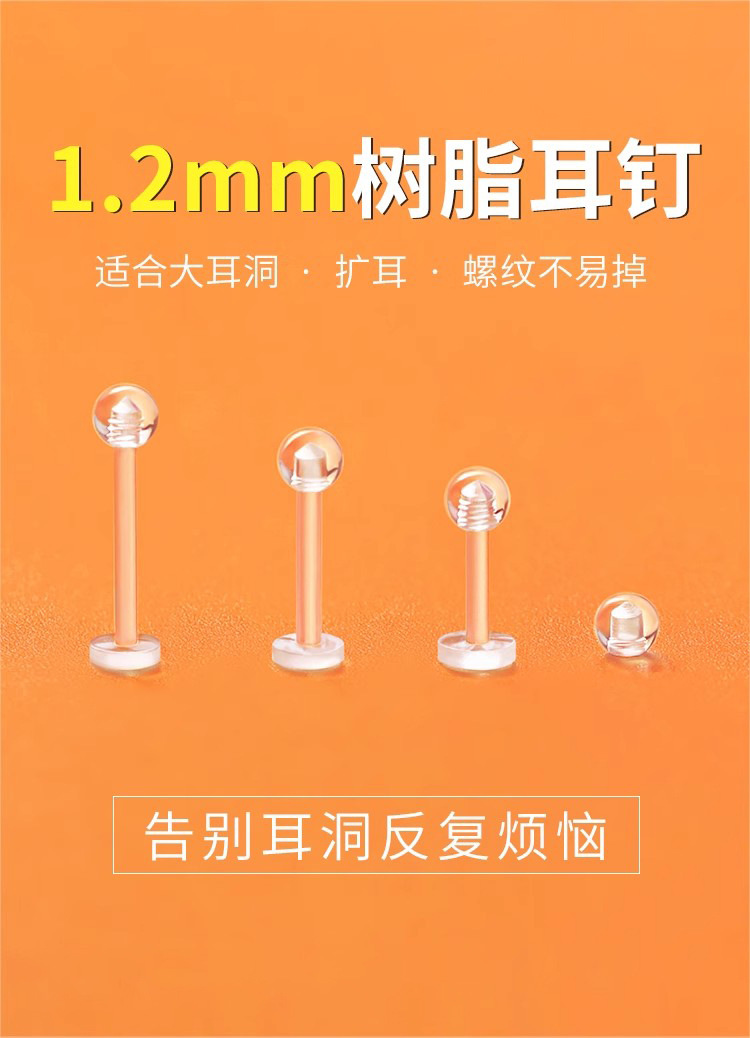 針の太さ1.2MM樹脂のピアスはアレルギーになりにくいです。