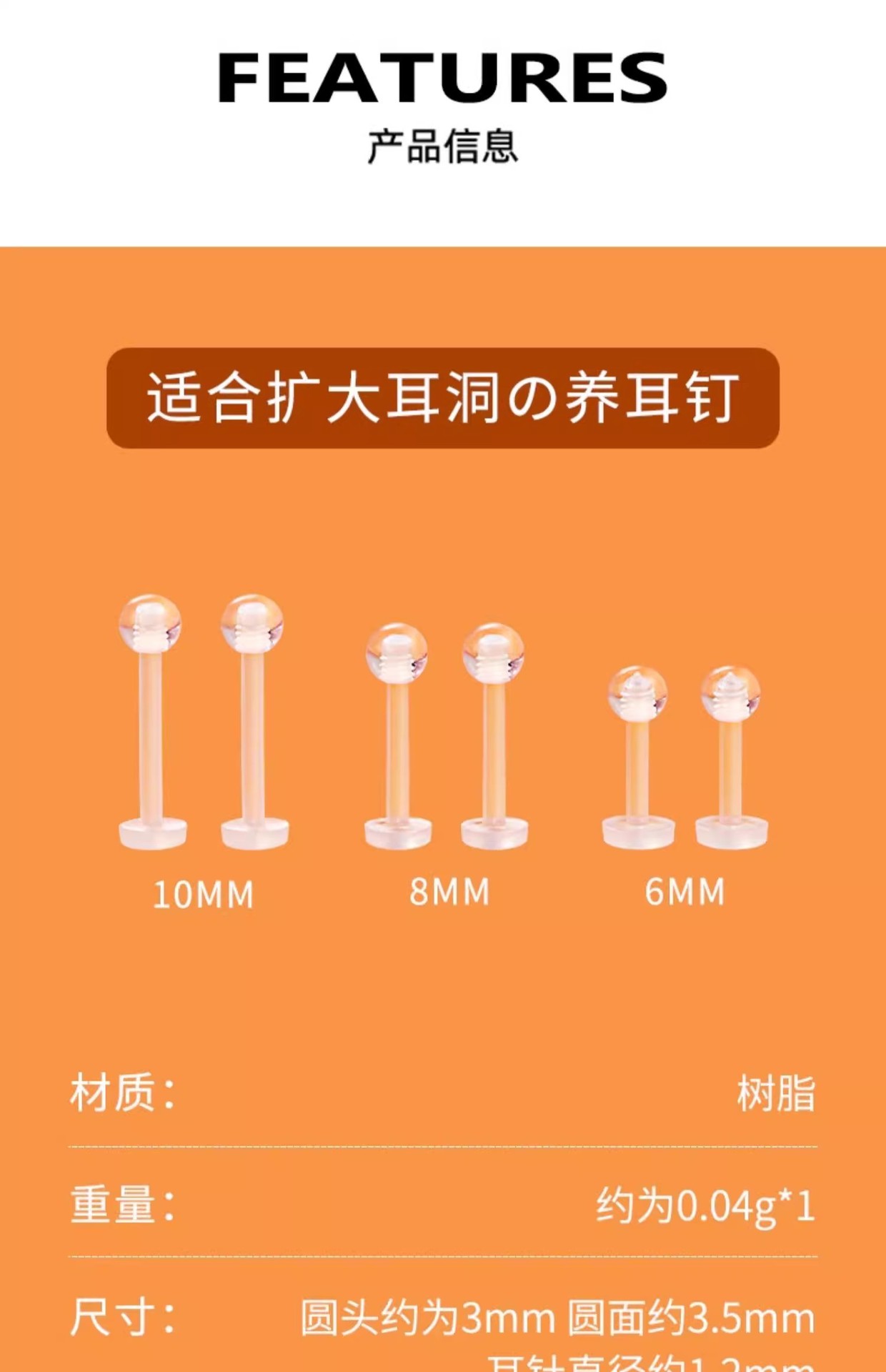 【1ペア】6mm樹脂製イヤリング(蝸牛に適しています),【1ペア】8mm樹脂ピアス(耳の骨に最適),【1ペア】10mm樹脂ピアス(耳たぶ対応)